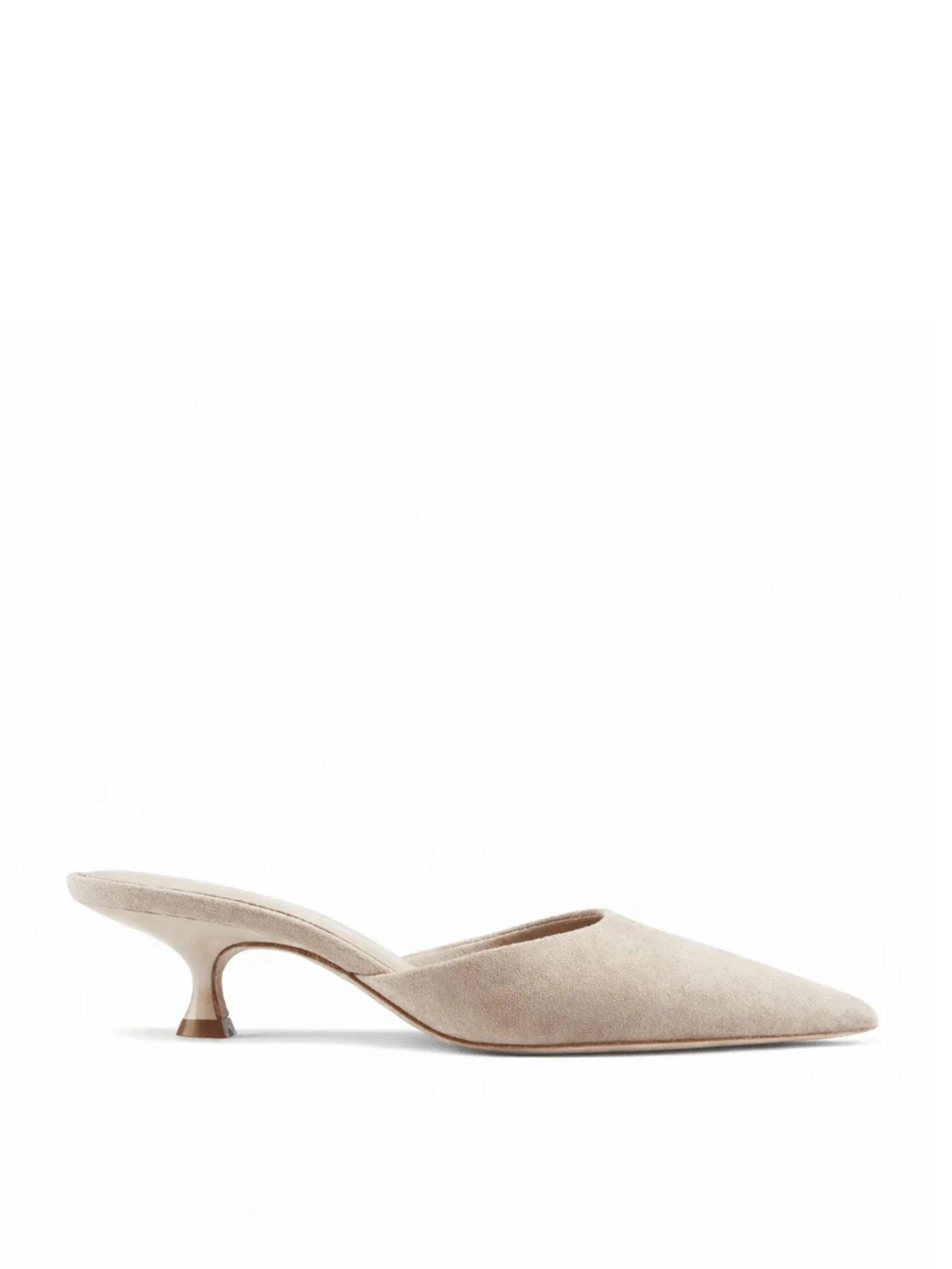 The St. Honore Slipper, a polished and elegant choice for the fashion-conscious woman. The lush suede upper exudes opulence and style, bringing glamour to your every step. This timeless silhouette is ideal for classic style. Vegan upperVegan insoleVegan outsoleClosed pointed toeSlip onHandmadeDesigned in LA Self-covered stiletto heel, 1.6" (40mm)