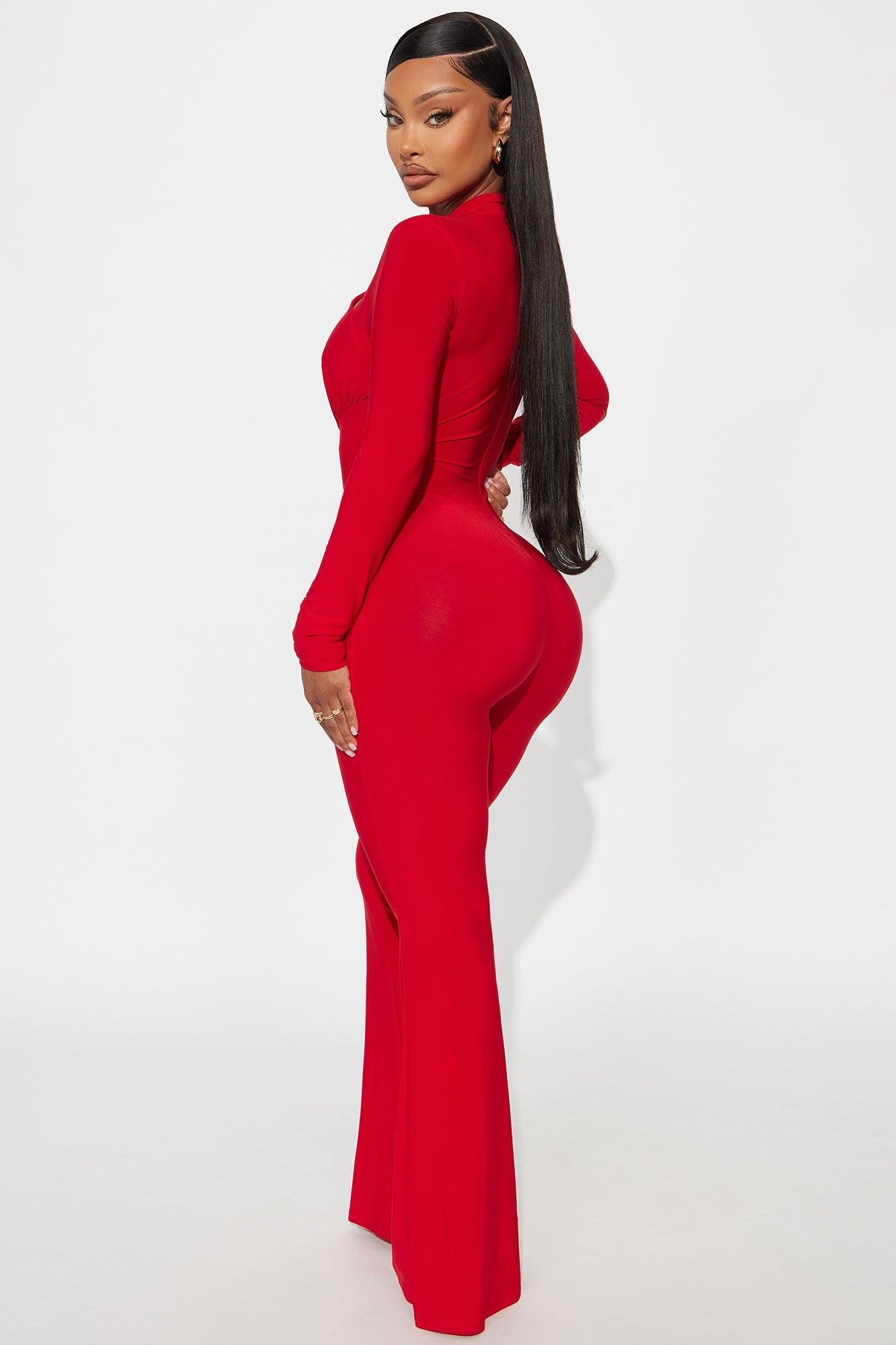 Stacey Long Sleeve Flare Leg Jumpsuit - Red Female