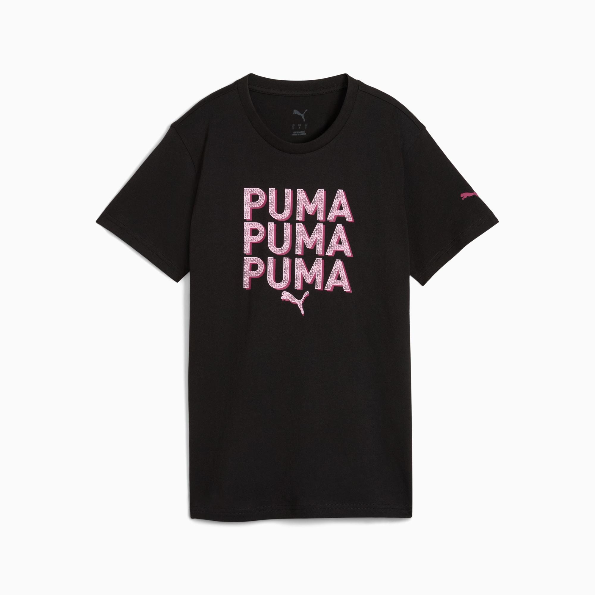 Own your vibe with this regular-fit tee made from soft jersey cotton. Featuring bold PUMA graphics, it's designed for casual days and easy styling. Whether you're going out or relaxing at home, this tee is your go-to for comfort and energy. Wear it loud, wear it proud â it's PUMA. FEATURES & BENEFITS Made with at least 20% recycled materials Fit: RegularMain Material: Single jerseyNeck: CrewShort sleeves | PUMA Stacked Women's T-Shirt in Black, Size L