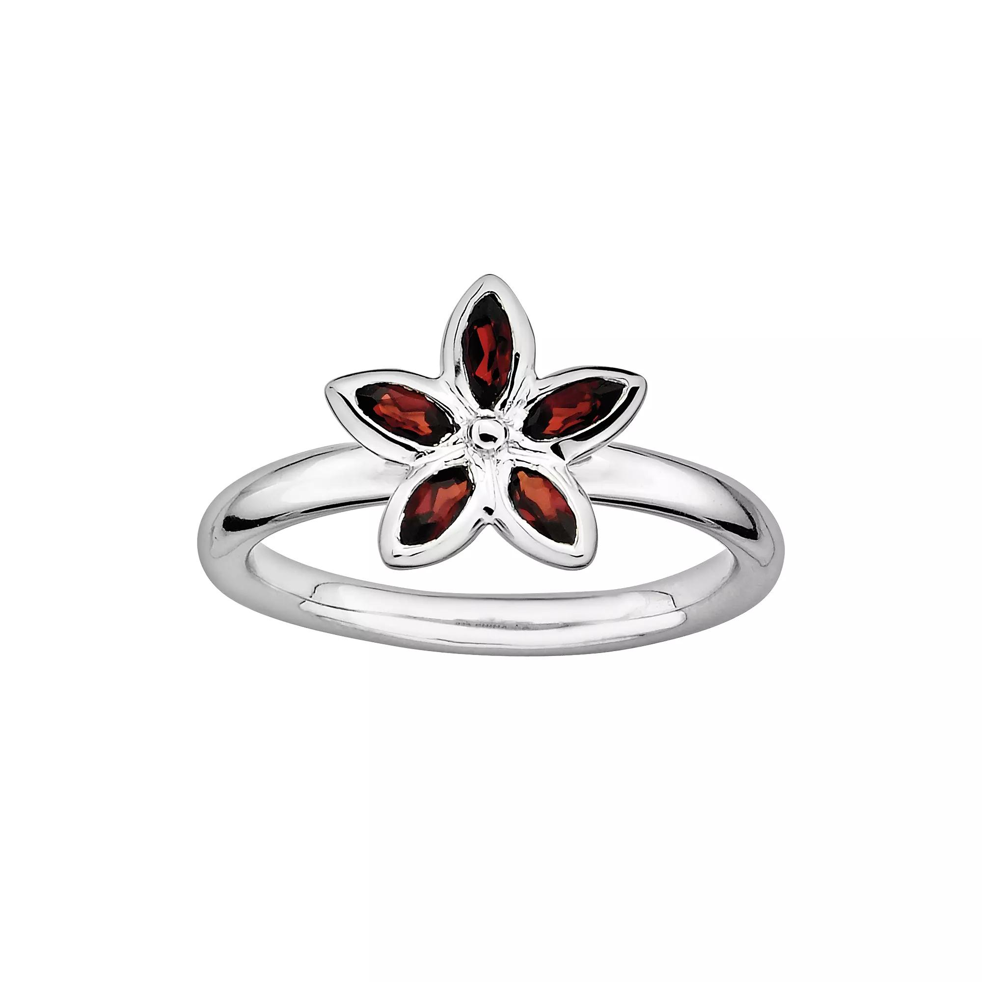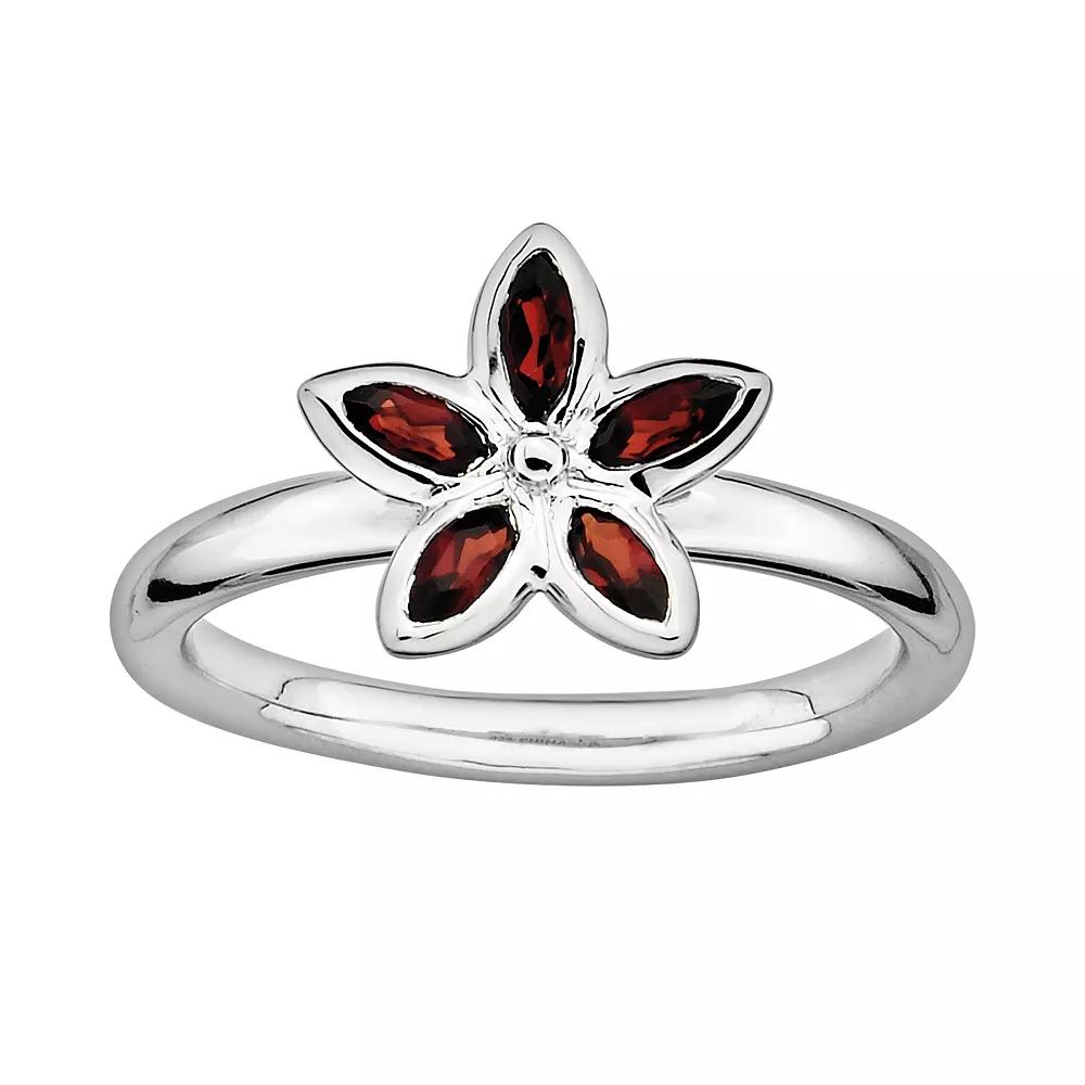 Stacks & Stones Sterling Silver Garnet Flower Stack Ring, Women's, Size: 9, Red