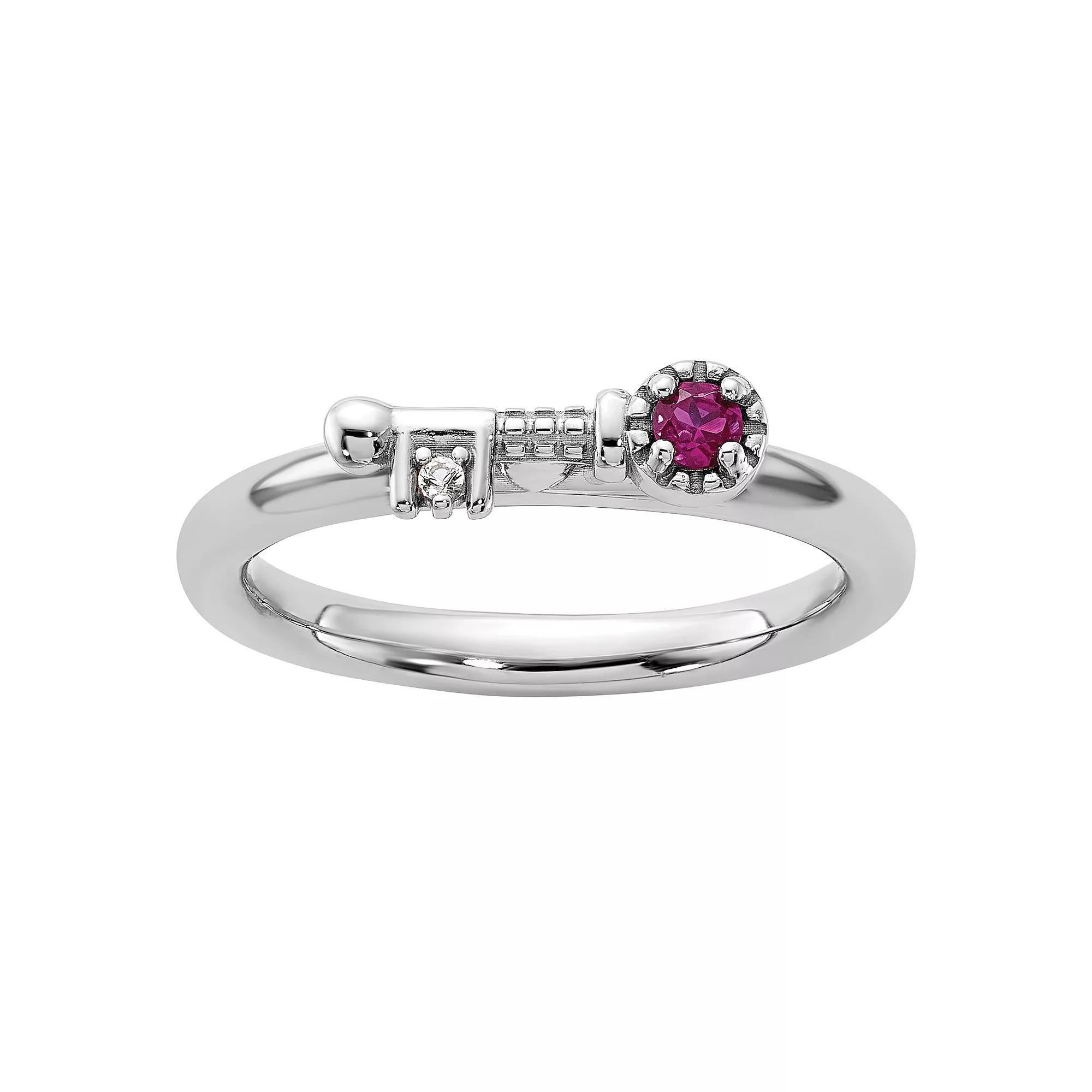 Add a little interest to your ring collection with this sterling silver Stacks & Stones gemstone-accented key stackable ring. Add a little interest to your ring collection with this sterling silver Stacks & Stones gemstone-accented key stackable ring. Gemstone accents Metal: sterling silver Packaging: boxed Plating: rhodium Width: 2.5 mm Finish: polished Gemstones may have been treated to enhance their appearance. Special care may be required. Please visit our Gemstone Treatment & Special Care Guide for more information. Size: 9. Gender: female. Age Group: adult.