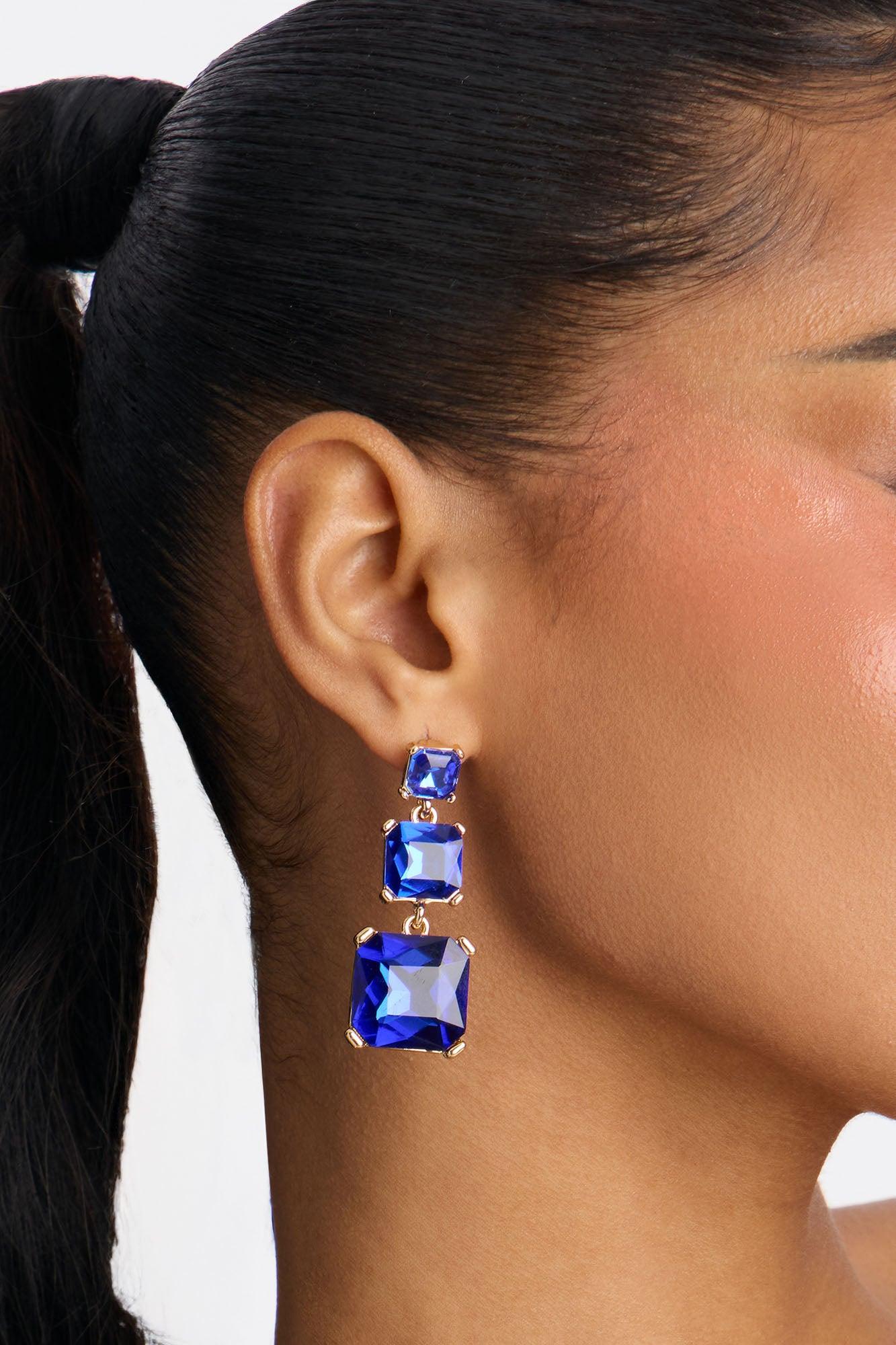 Star Gazer Rhinestone Drop Earrings - Blue Female