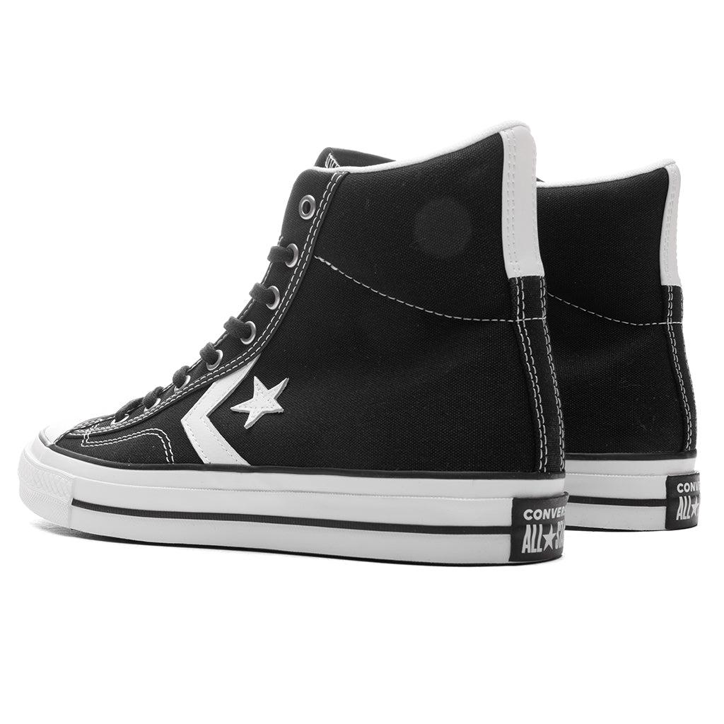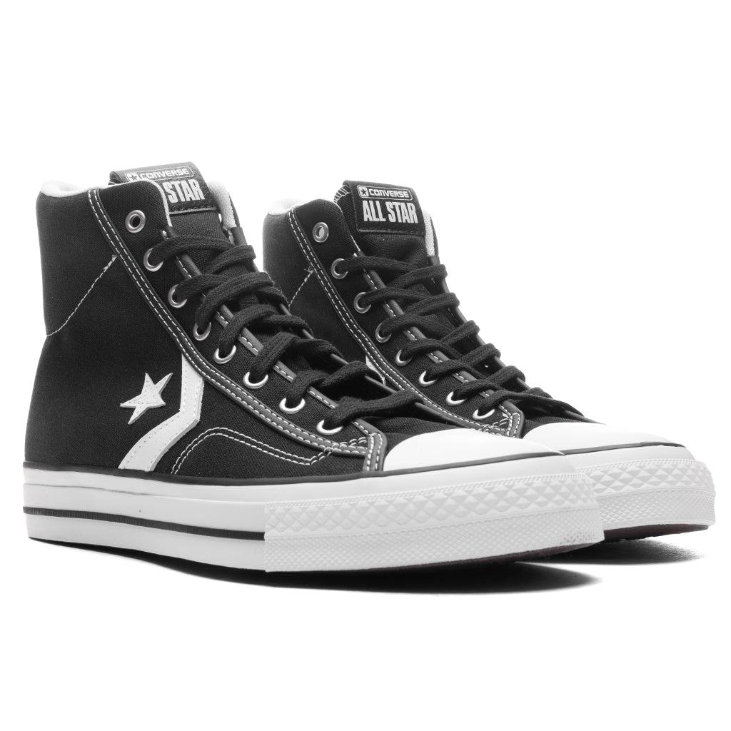 Now in a high top, the Converse Star Player 76 HI is constructed from a durable canvas cotton with contrast stitching based on vintage sport styles from the brand. OrthoLite cushioning, a padded collar, and more space than the classic Chucks, this sneaker provides optimal comfort. A leather Star Chevron on the side panel completes the design. Canvas construction High-top Lace-up design Padded collar Leather Star Chevron Contrast stitching Style No: A10516C