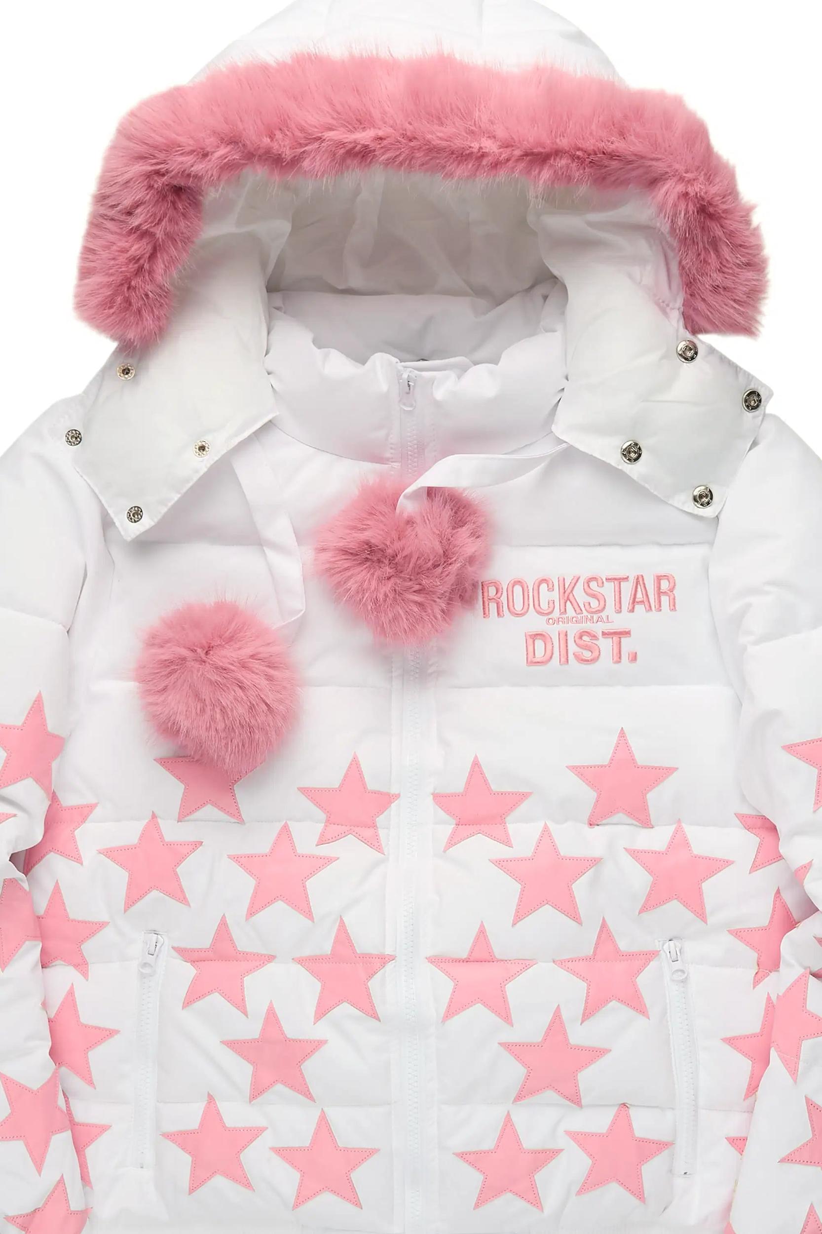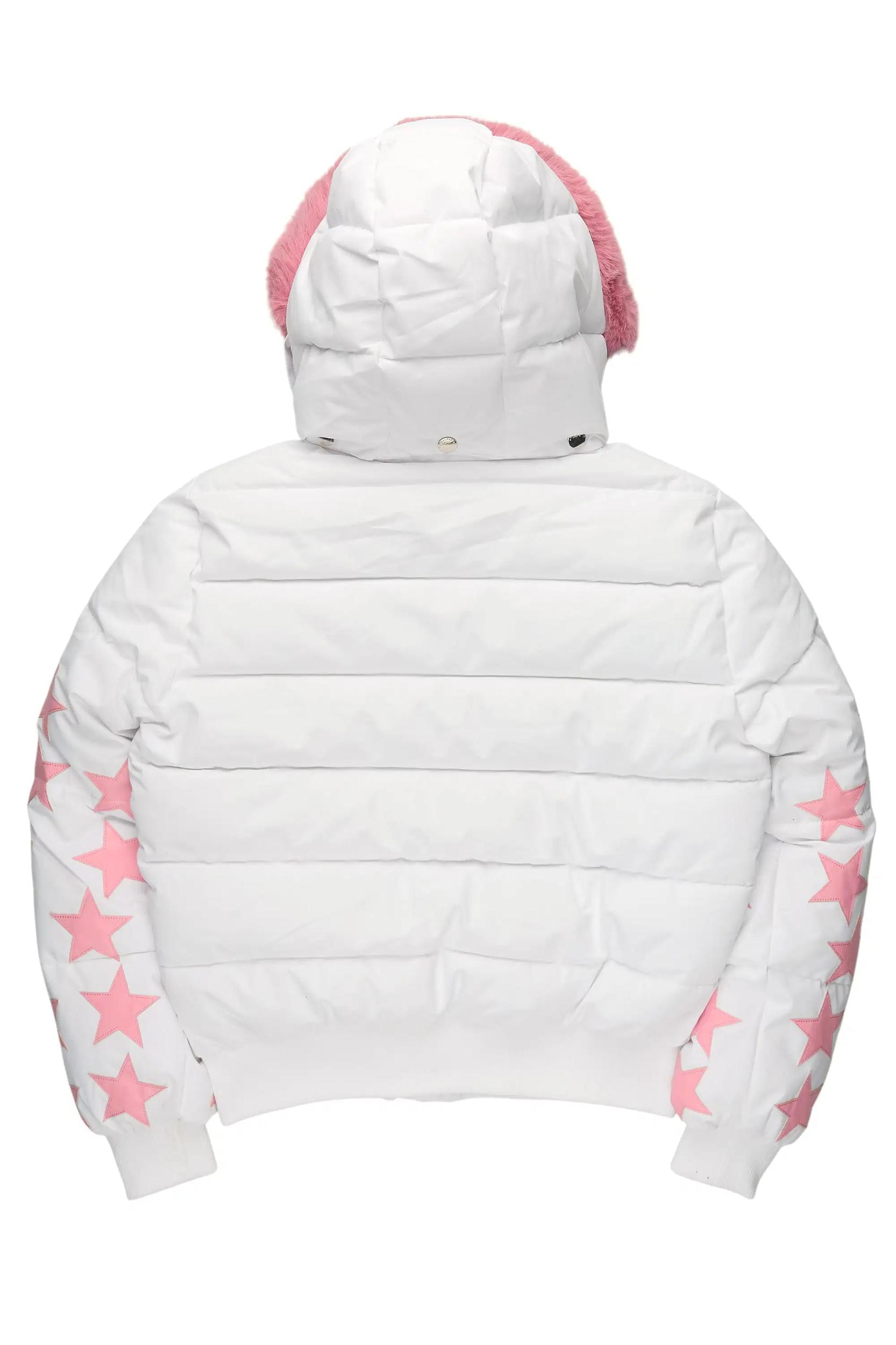Starlena White Puffer Jacket With Fur Hood Female