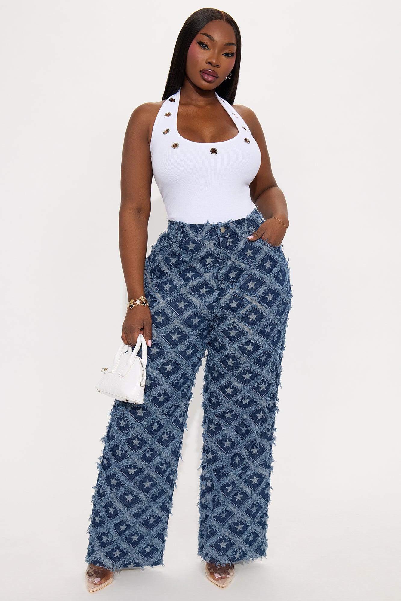 Stars Have Aligned Jacquard Straight Leg Jeans - Dark Wash Female