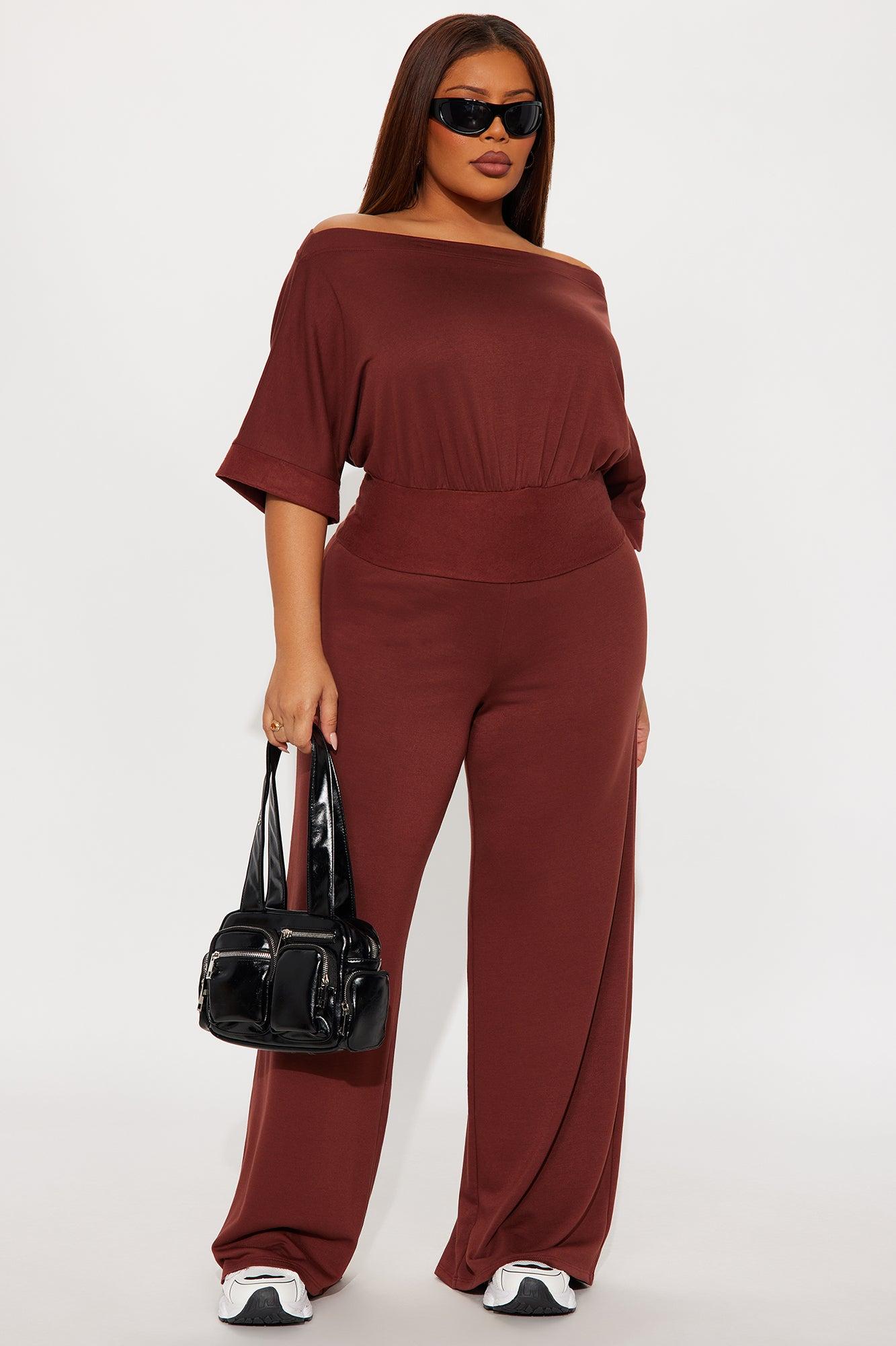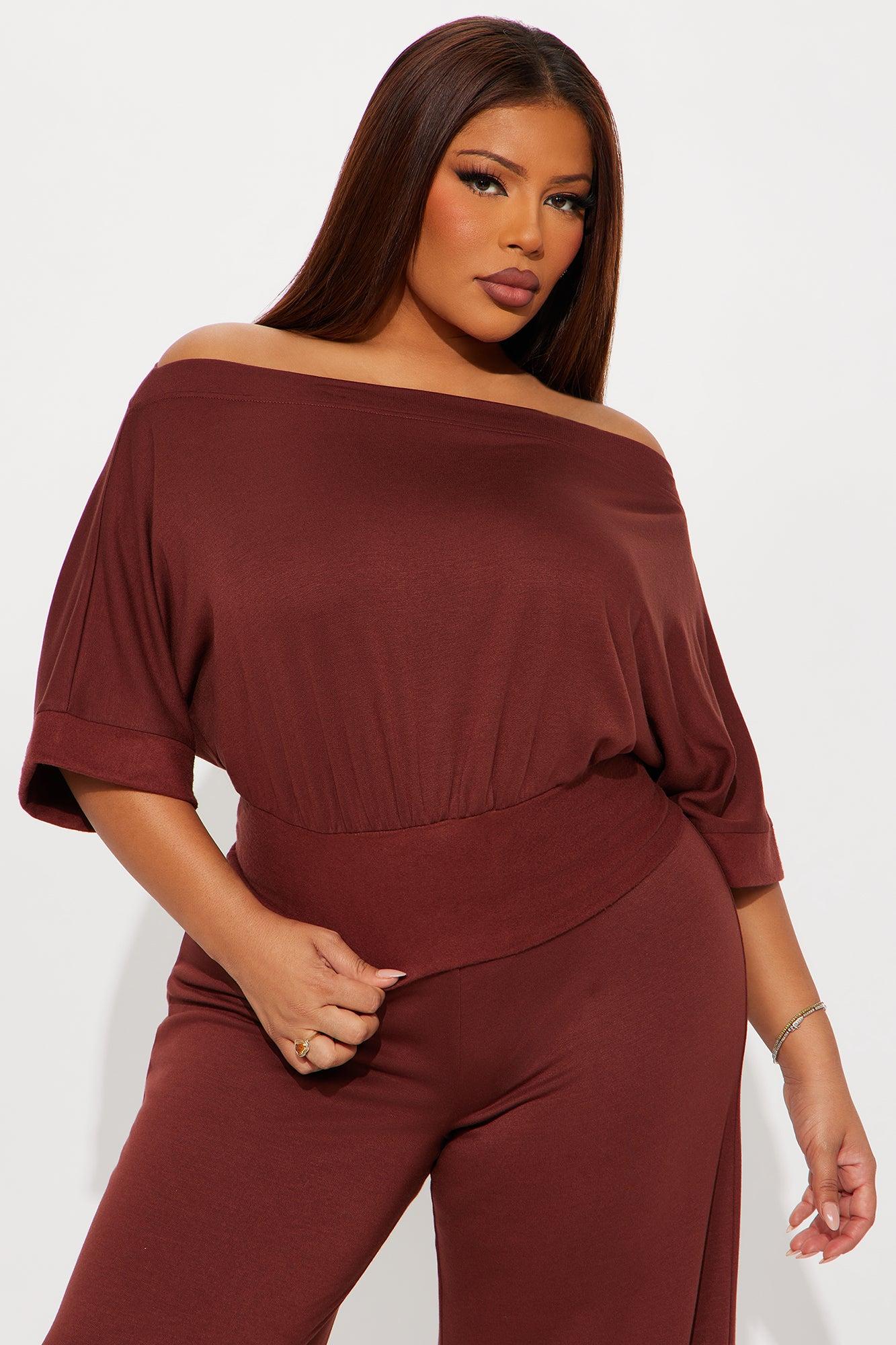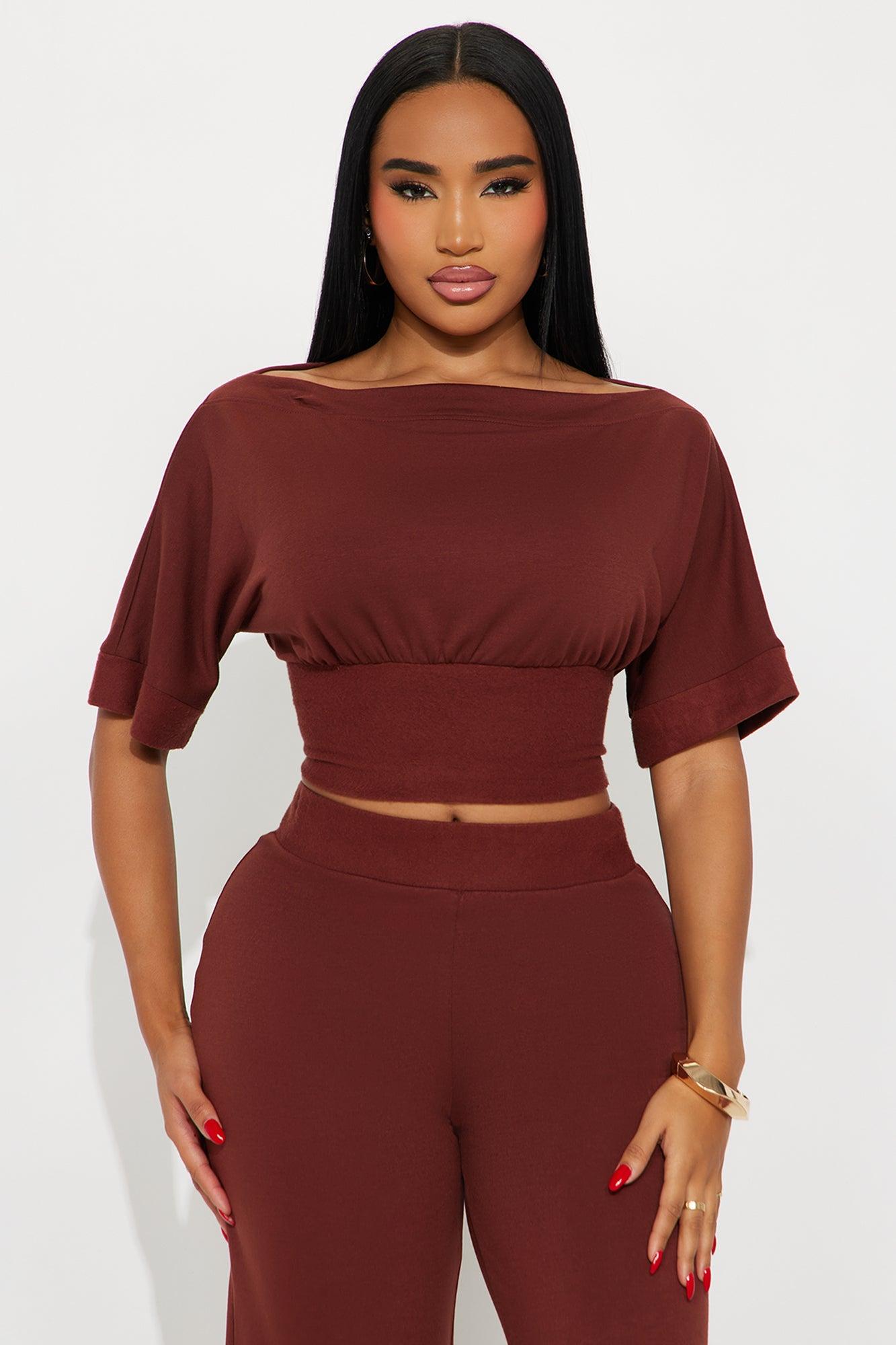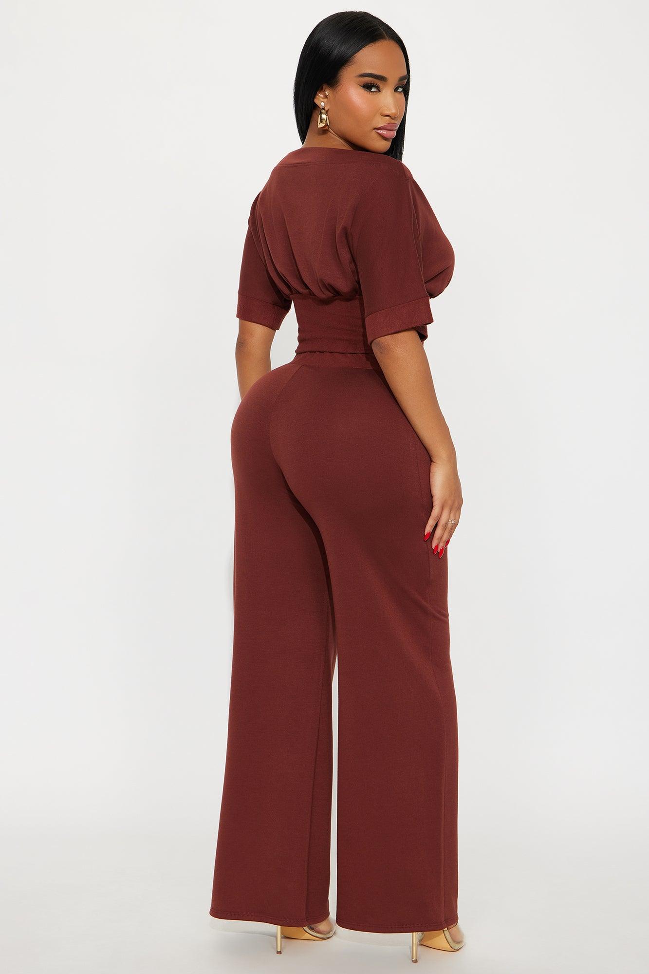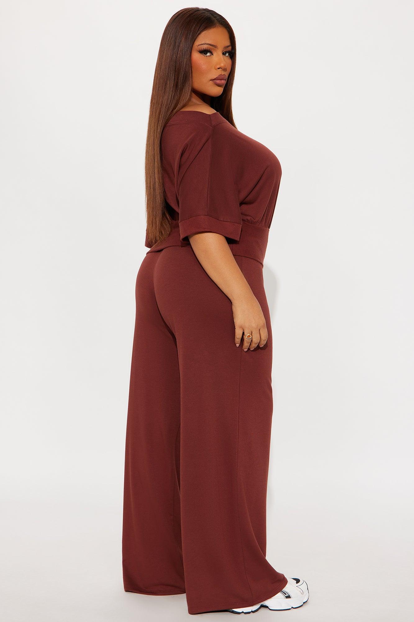 Stay A While Dolman Sleeve Wide Leg Pant Set - Brown