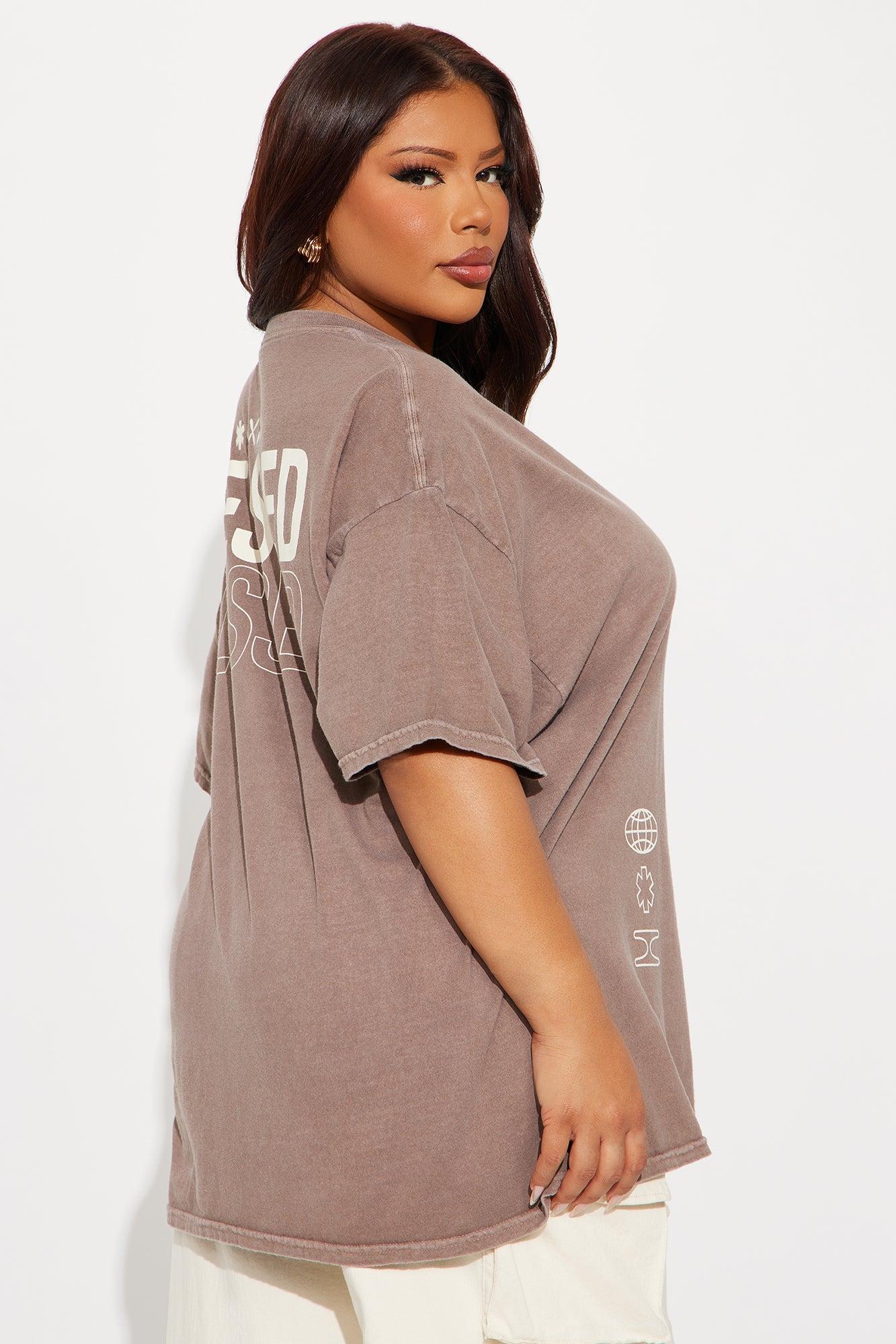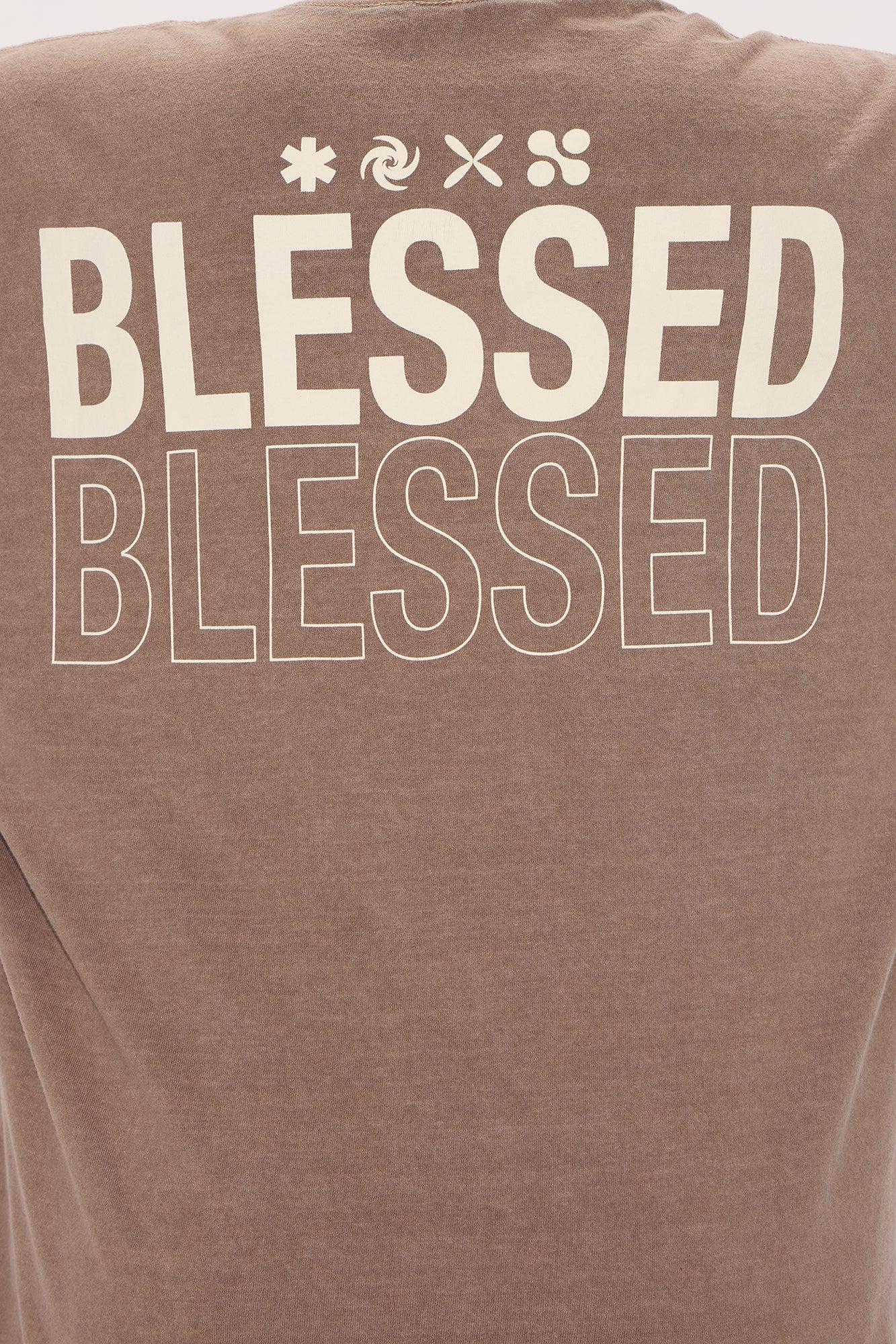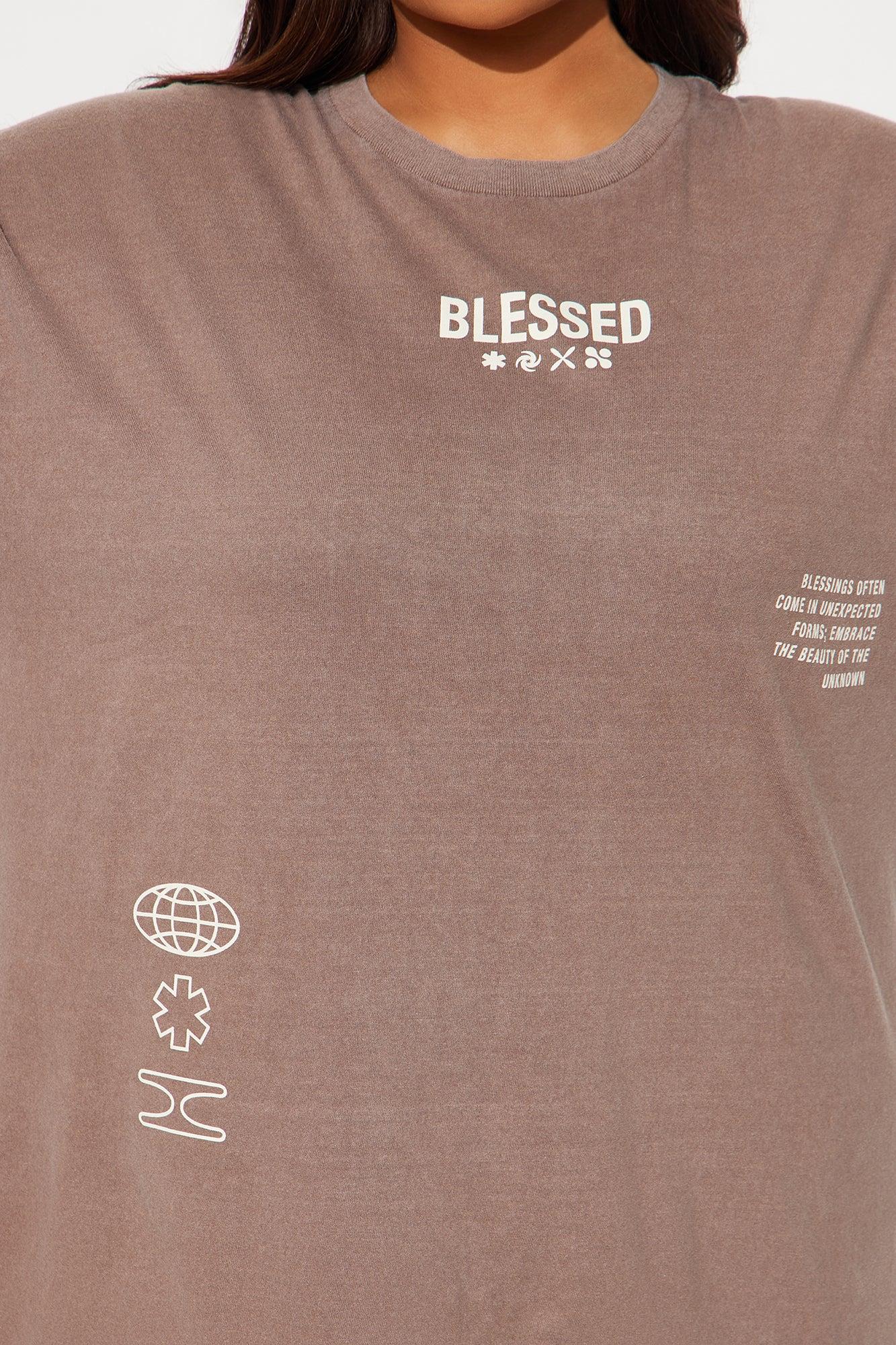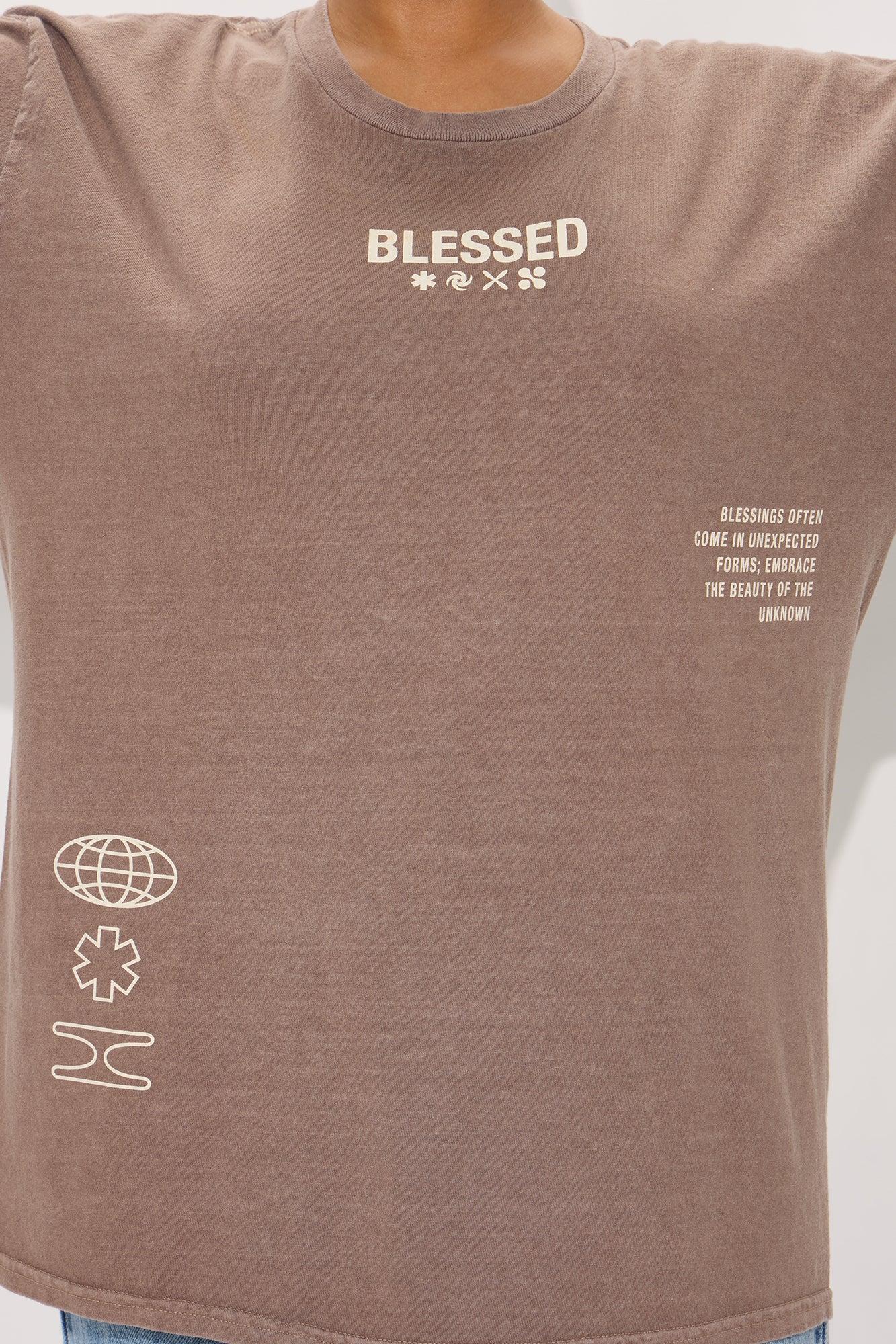 Stay Blessed Washed Oversized Tee - Brown
