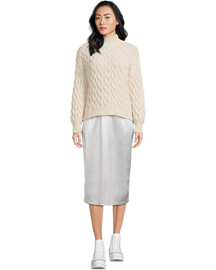 From work to weekend, this Sanctuary™ Cable Mock Neck Sweater delivers comfort with a dash of elegance. With no lining, this pull on chenille sweater features round neckline, long sleeves, allover cable knit detailing, and straight hem.