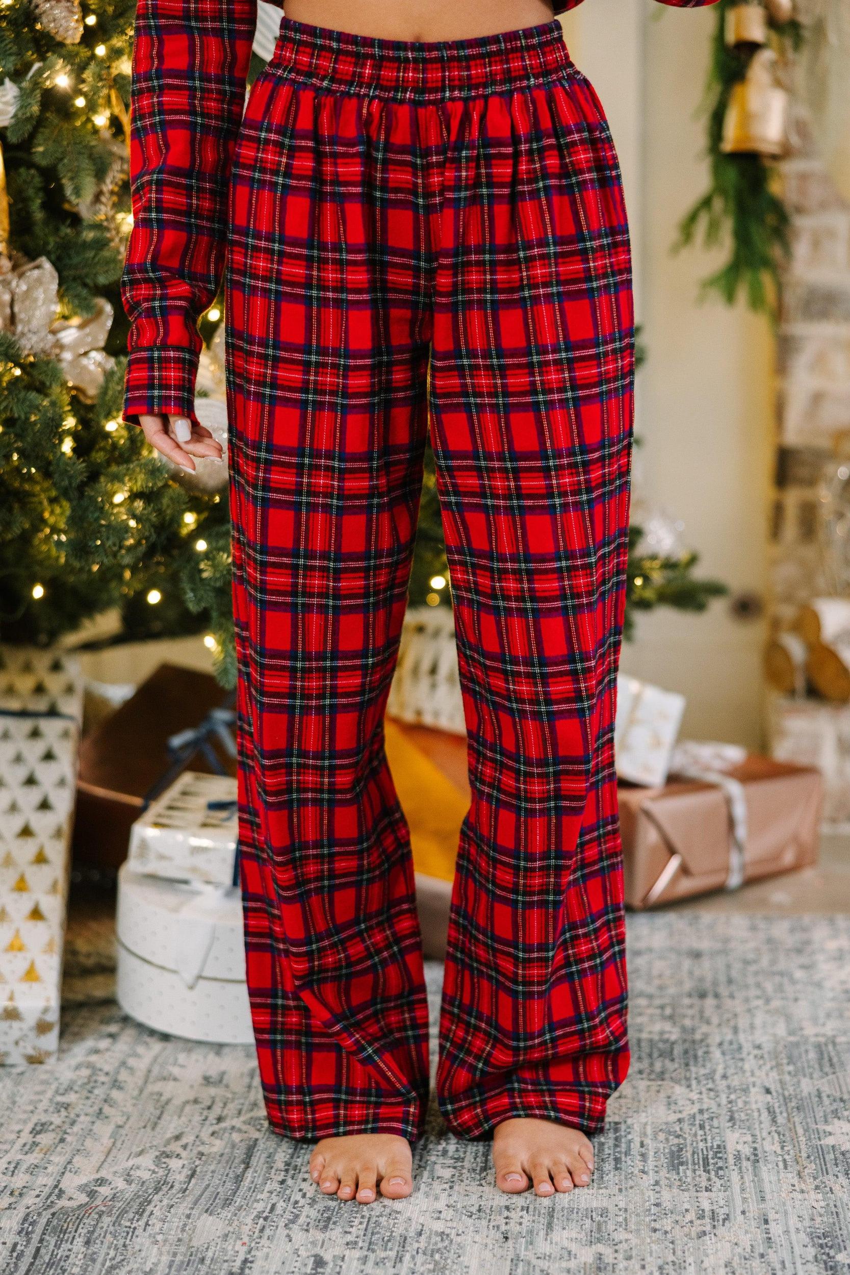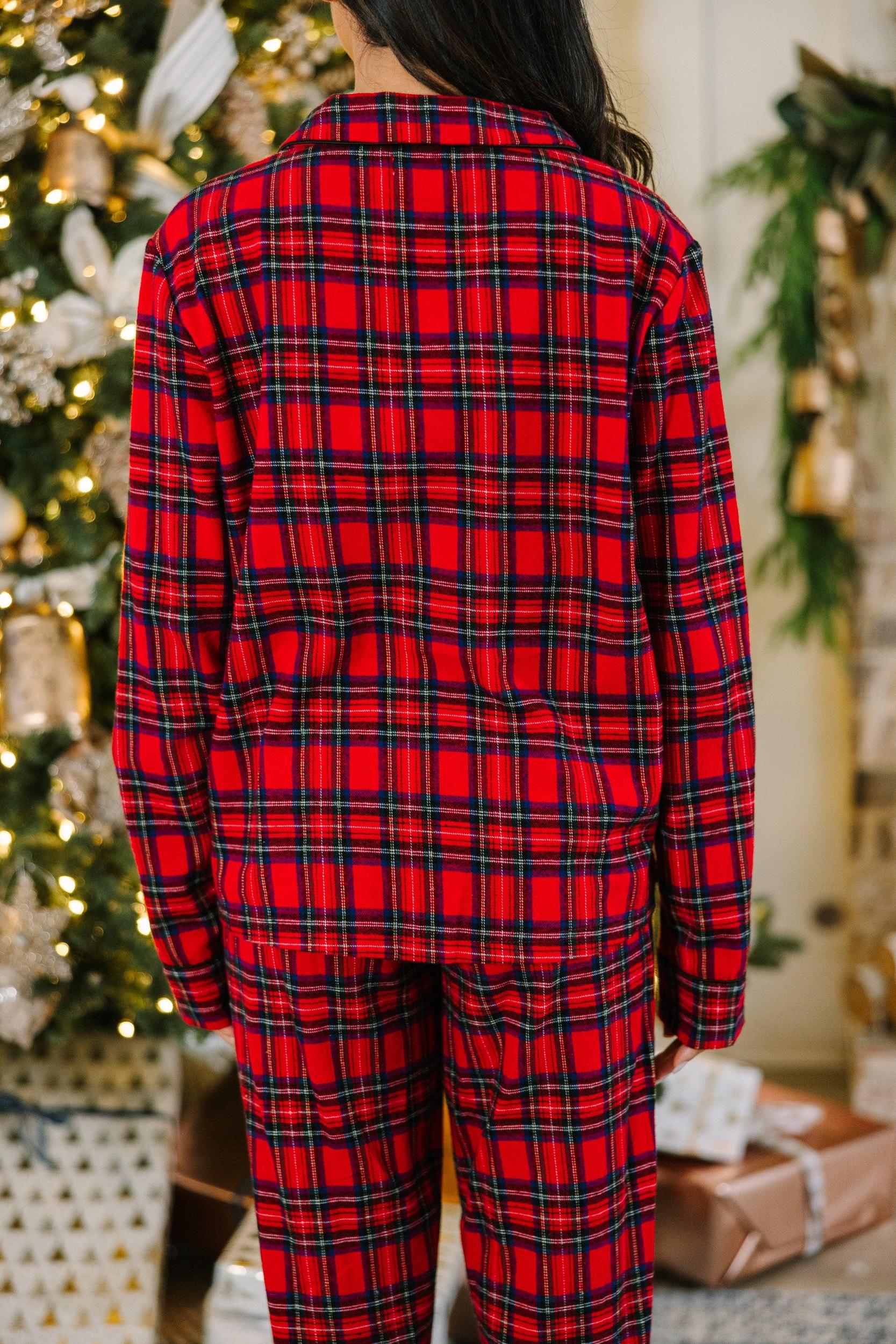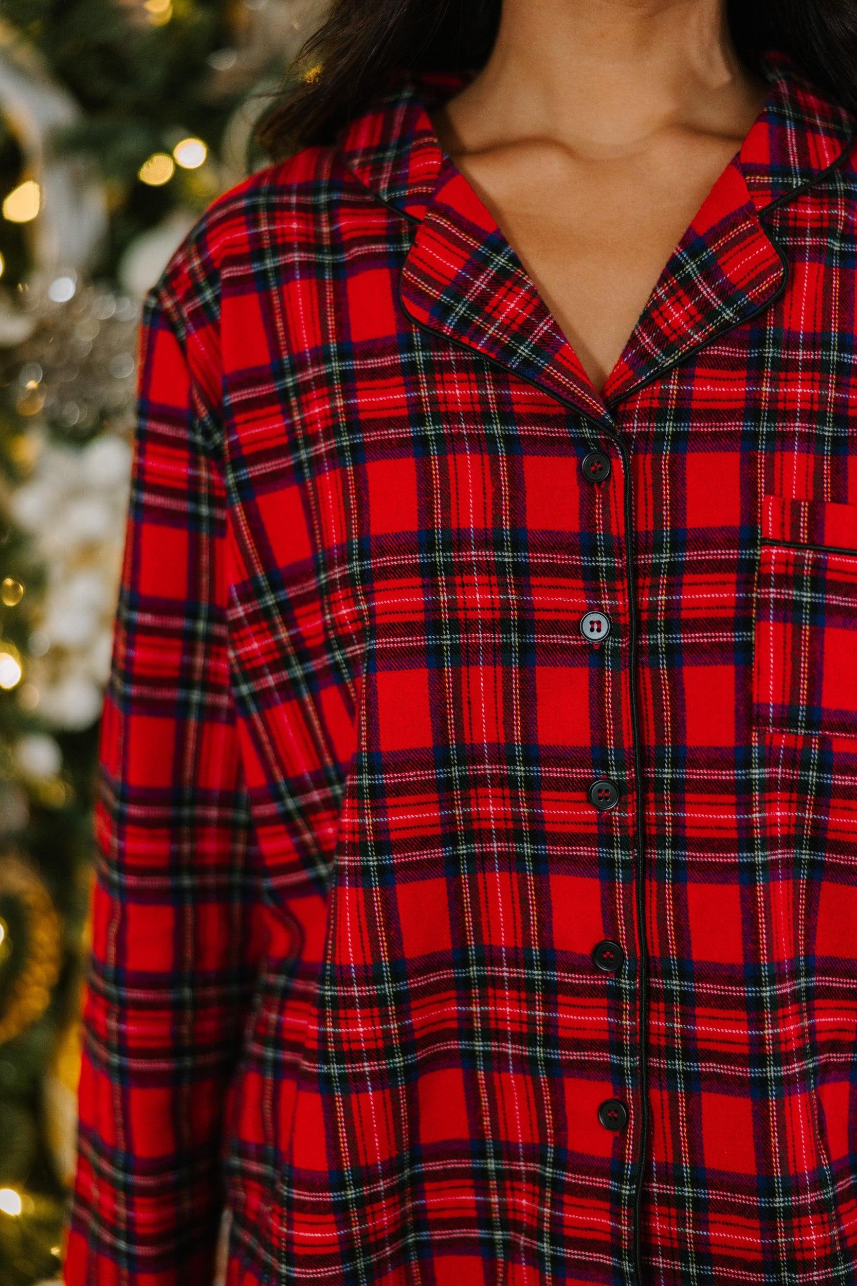 Plan on staying in a lot this holiday season? Or at least plan on staying with family and friends for Christmas eve? Then these pajamas are perfect for you! They are so cute and totally comfy! These classic pjs are going to have you feeling festive and fun this holiday season! Top Collared neckline Button down front closure Short sleeves Black piping Plaid print No stretch Bottoms Elastic waistband Plaid print No stretch however the elastic extends the waist *These run large. You may consider sizing down. Cindy is wearing the small.