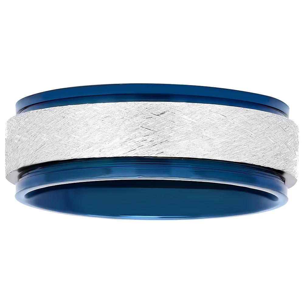 Accent his look with this stylish Steel Nation Mens Stainless Steel with Blue Ion Plated Strip Ring. Click on this JEWELRY & WATCHES GUIDE to learn about fit, styles, materials and more! Accent his look with this stylish Steel Nation Mens Stainless Steel with Blue Ion Plated Strip Ring. Click on this JEWELRY & WATCHES GUIDE to learn about fit, styles, materials and more! FEATURES Width: 8 mm Shank style: straight Band fit: comfort fit Nickel free Metal: stainless steel Plating: ion plated Finish: brushed Packaging: boxed Size: 13. Gender: male. Age Group: adult.