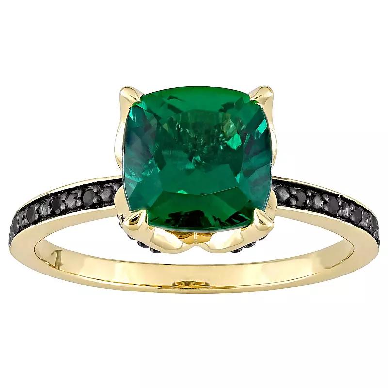 This gorgeous 10k gold back diamond accent and lab-created emerald cocktail ring is a must-add to your fine jewelry collection. This gorgeous 10k gold back diamond accent and lab-created emerald cocktail ring is a must-add to your fine jewelry collection. Width: 8.6 mm Metal: 10k gold Plating: 10k gold Finish: polished Packaging: boxedSTONE DETAILS Stone type: lab-created emerald Total weight: 1 5/8 ct. Shape: cushion cut Setting: prongDIAMOND DETAILS Total weight: less than 1/10 ct. Shape: round Setting: pave Gemstones may have been treated to enhance their appearance. Special care may be required. Please visit our Gemstone Treatment & Special Care Guide for more information. Please note, due to the high value of this item, a signature may be required upon delivery. Diamond weights are approximate. Diamond total weights may vary between .01 and .08 ct. Some diamonds have fewer than 17 facets. Image(s) may be enlarged to show detail. Size: 4. Color: Green. Gender: female. Age Group: adult.