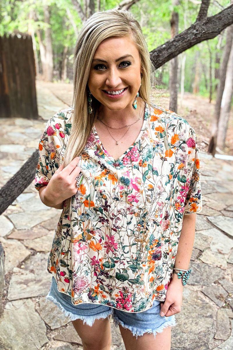 Sterling Kreek Field of Flowers Top* I Gussied Up Online Boutique This oversized Field Of Flowers Top is the perfect blend of cute and comfortable. With its fun floral print, it can be dressed up or down for any occasion. A must-have for anyone looking to add a bit of quirkiness to their wardrobe! 95% Polyester 5% Spandex SIZE CHEST LENGTH SLEEVE WIDTH SLEEVE LENGTH XS 35" 21.5" 8.5" 15.25" S 36" 22" 9" 16" M 37" 23" 9" 16" L 38.5" 23" 9.5" 16" XL 39.5" 23.5" 9.5" 16.5" 2X 41.5" 24" 9.5" 17" 3X 42.5" 25" 10" 18"