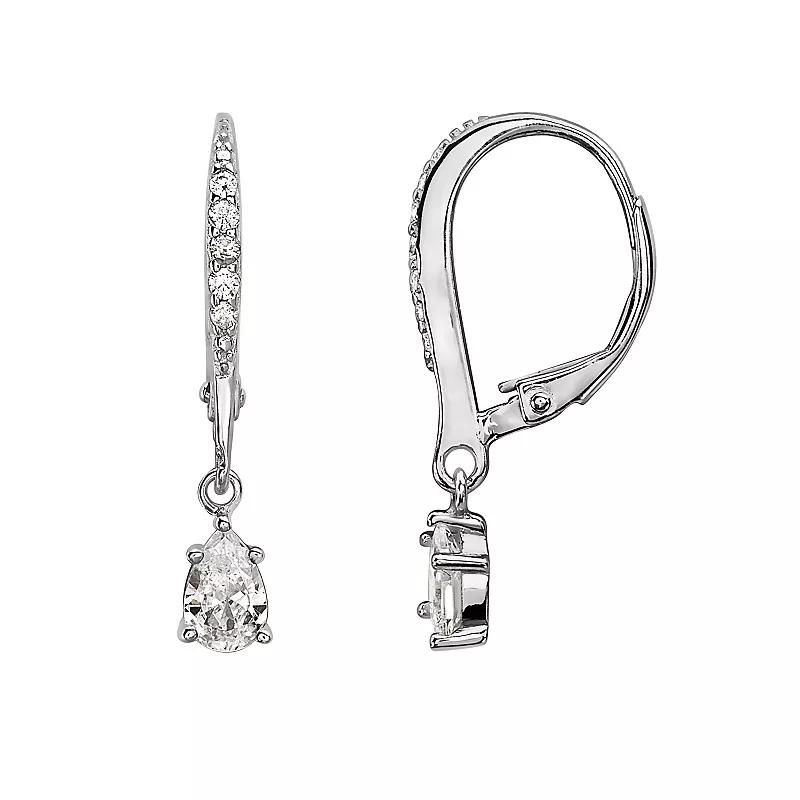 These gorgeous sterling silver cubic zirconia drop earrings are a must-add to your fine jewelry collection. These gorgeous sterling silver cubic zirconia drop earrings are a must-add to your fine jewelry collection. Length: 28 mm Closures: leverback Metal: sterling silver Plating: rhodium Finish: polished Additional details: cubic zirconia accents Packaging: boxed Gemstones may have been treated to enhance their appearance. Special care may be required. Please visit our Gemstone Treatment & Special Care Guide for more information. Please note, due to the high value of this item, a signature may be required upon delivery. Size: One Size. Color: White. Gender: female. Age Group: adult.