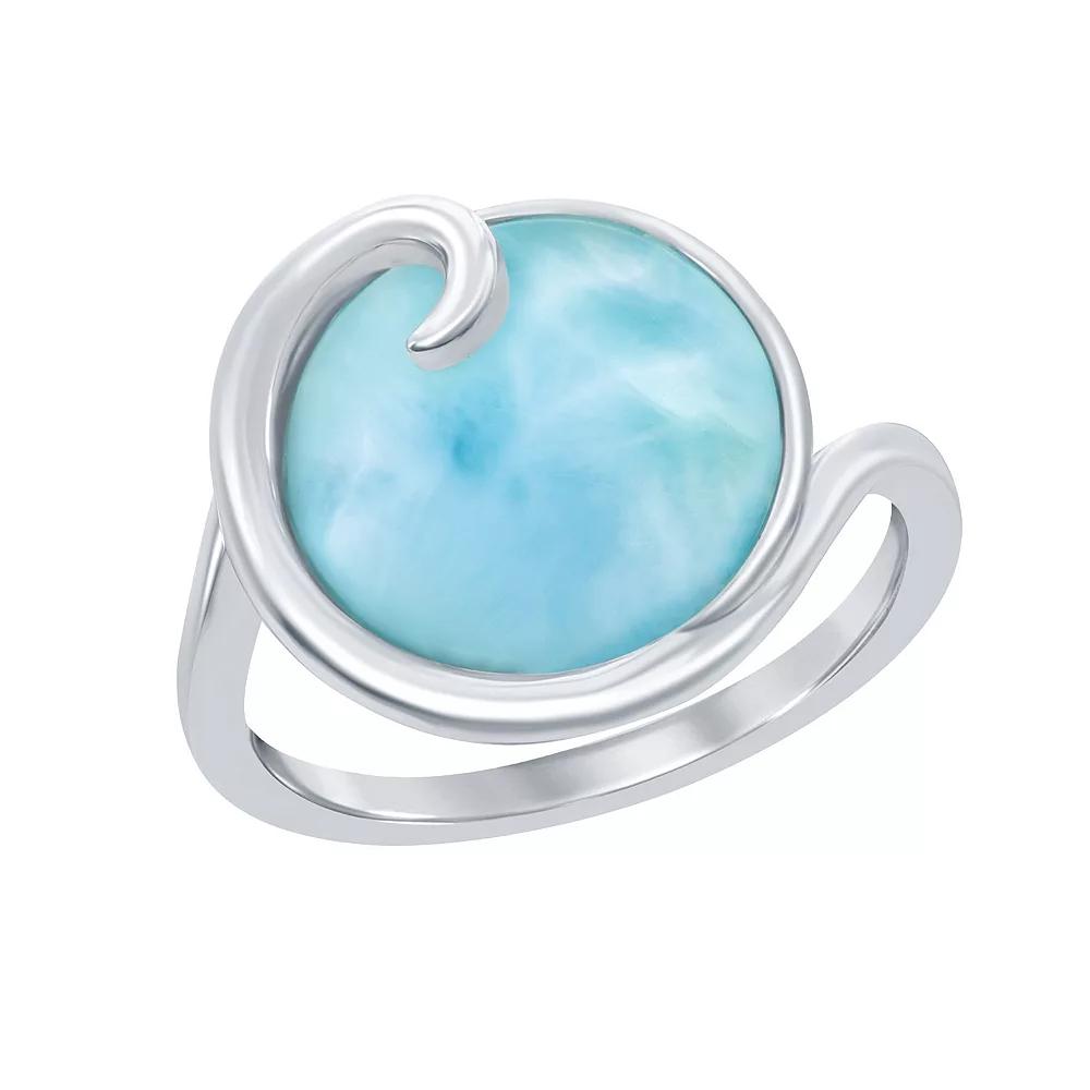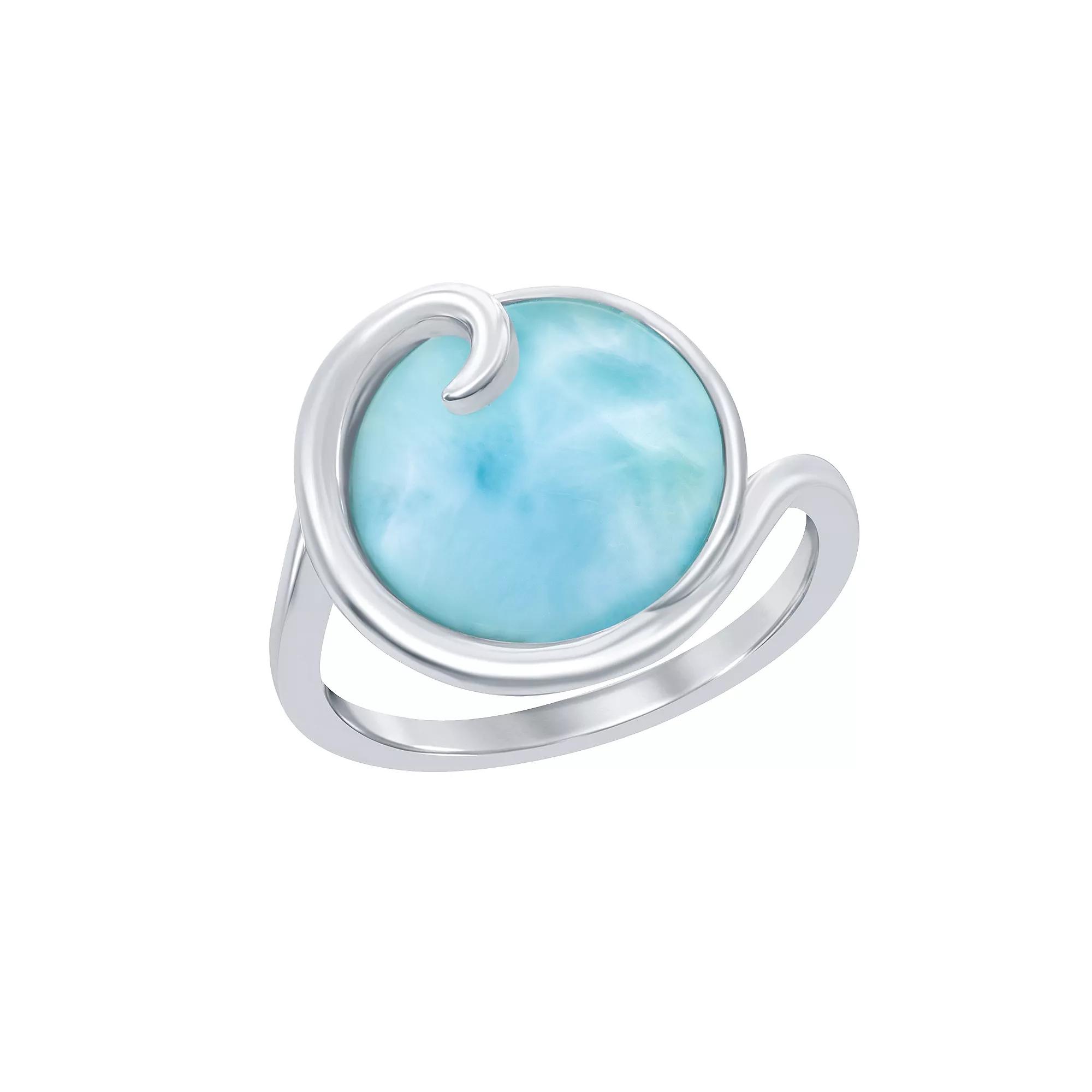 Love your look with this impressive ring. Love your look with this impressive ring. Packaging: boxed Metal: sterling silver Plating: rhodium Additional details: nickel free Width: 15 mm Finish: polished STONE DETAILS Stone type: Larimar Total weight: 3 ct. Setting: bezel Shape: round Size: 7. Color: Blue. Gender: female. Age Group: adult.