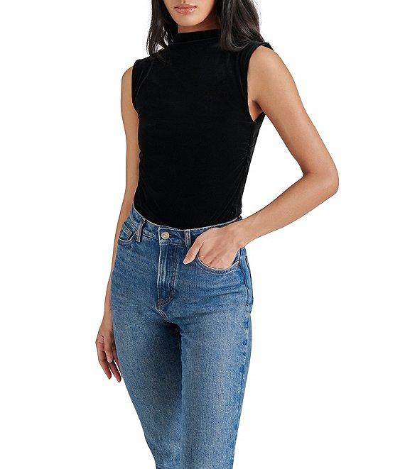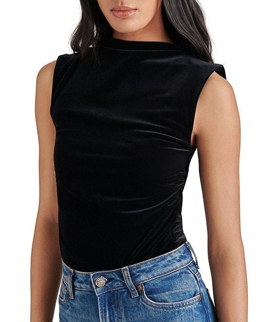 Steve Madden Essen Stretch Velvet Mock Neck Sleeveless Bodysuit