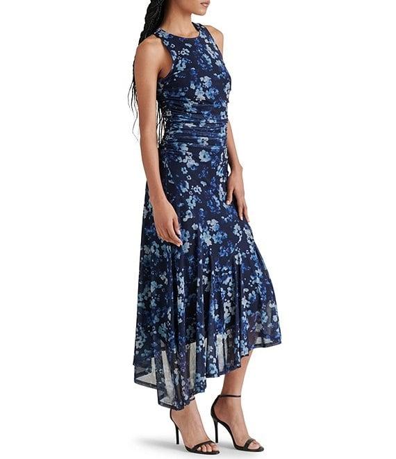 From Steve Madden, this dress features: Mesh fabrication Floral print Crew neckline Sleeveless Pullover construction Asymmetrical hem Approx. 53" length Polyester/spandex Machine wash/tumble dry Imported.