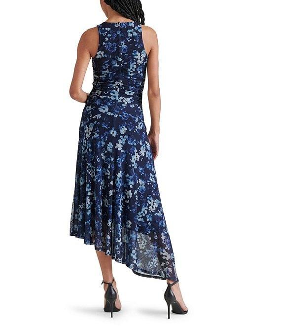 Steve Madden Laney Floral Print Crew Neck Sleeveless Mesh Asymmetrical Hem Dress
