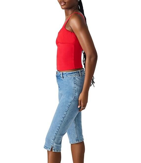 Steve Madden Luana Mixed Media Scoop Neck Ruched Tank Top