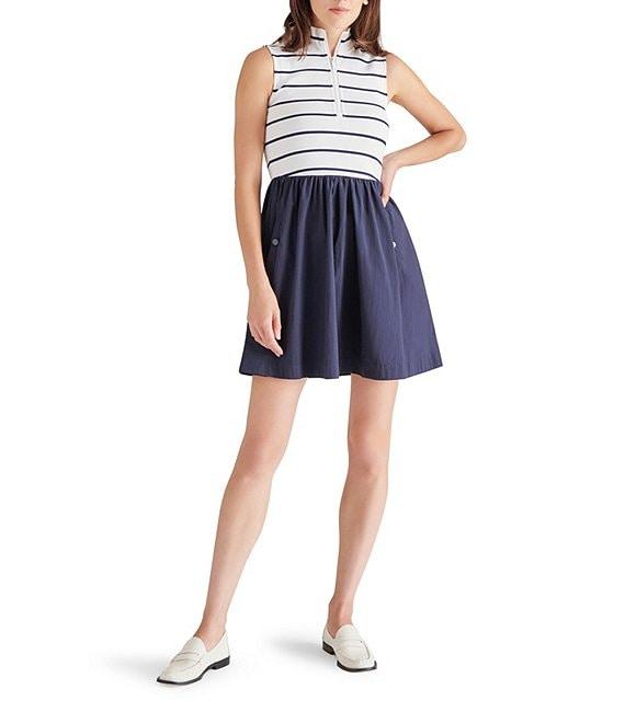 Steve Madden Lyon Stripe Mock Neck Zipper Front Sleeveless Mini Dress