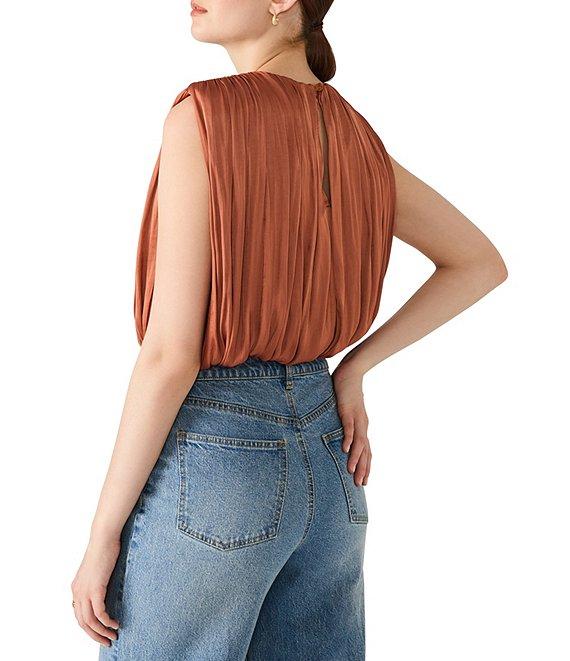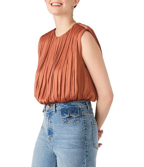 Steve Madden Milana Washed Satin Crew Neck Sleeveless Bubble Hem Top