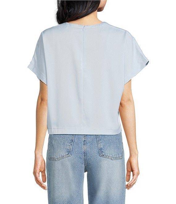 Steve Madden Noah Stretch Satin Crew Neck Short Sleeve Top
