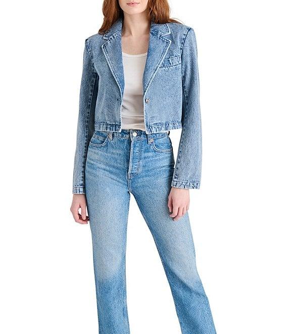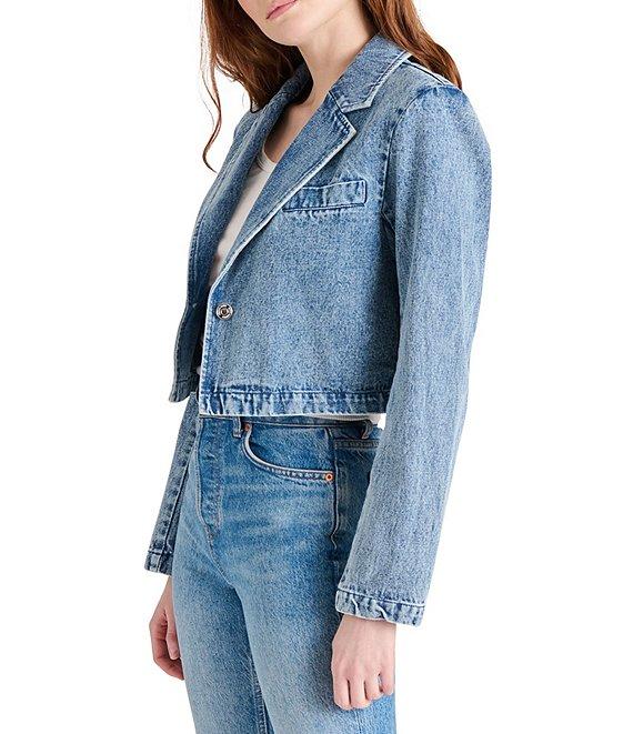 Steve Madden Tarin Notch Lapel Neck Long Sleeve Denim Cropped Blazer