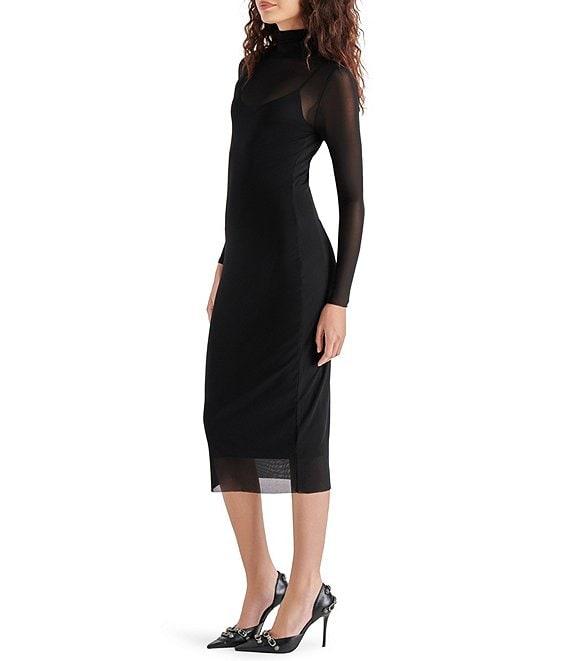 Steve Madden Vivienne Mesh Turtleneck Long Sleeve Bodycon Midi Dress