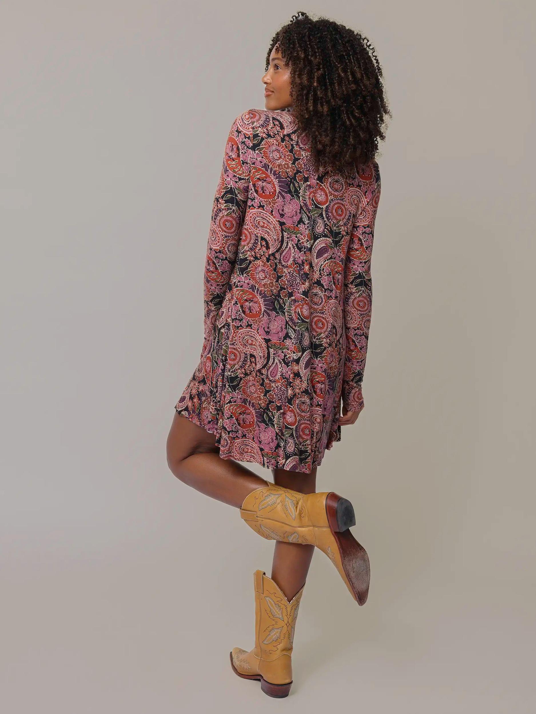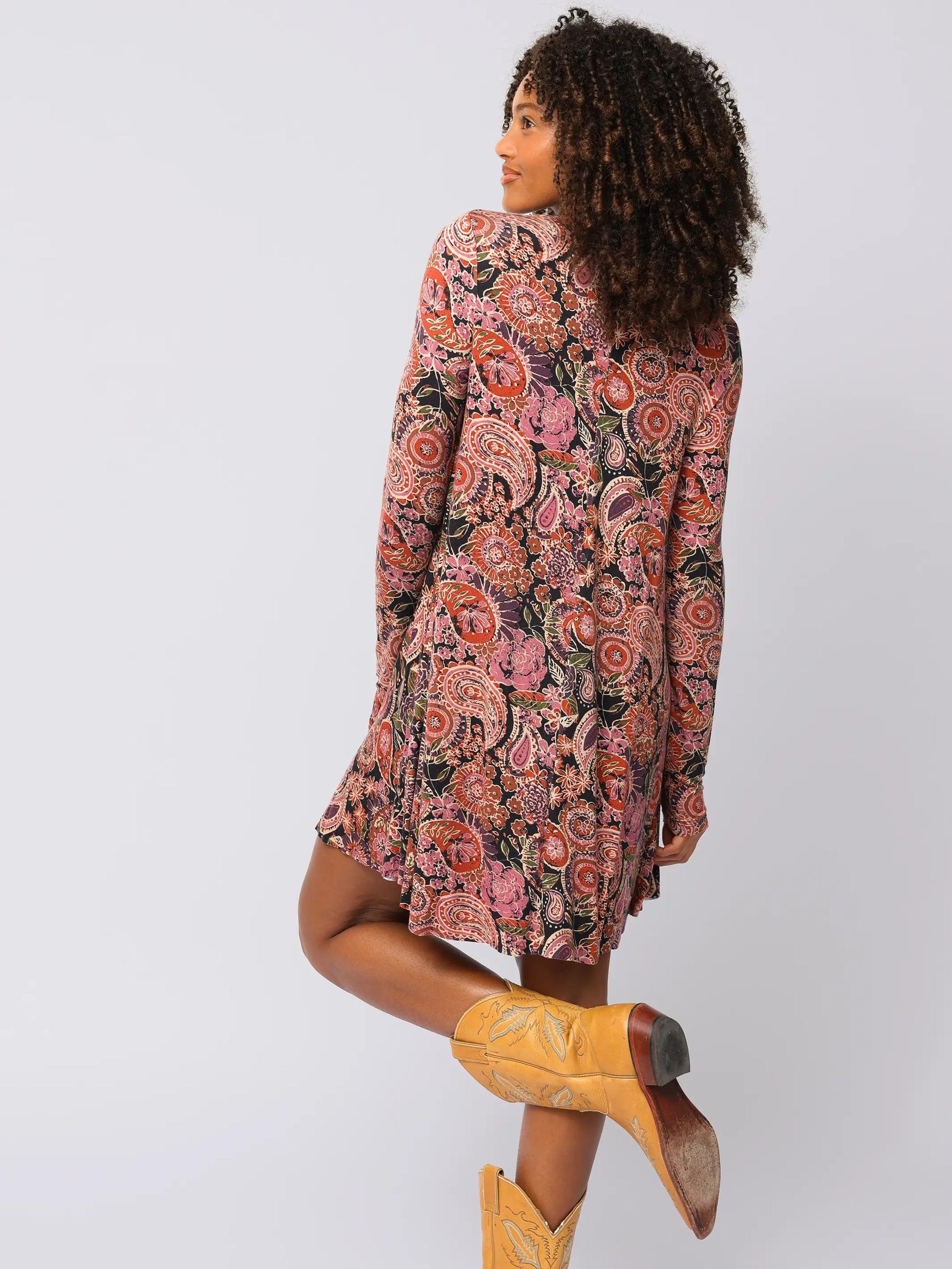 Stevie "ButterSoft" Knit Mini Dress - Black Sketched Paisley