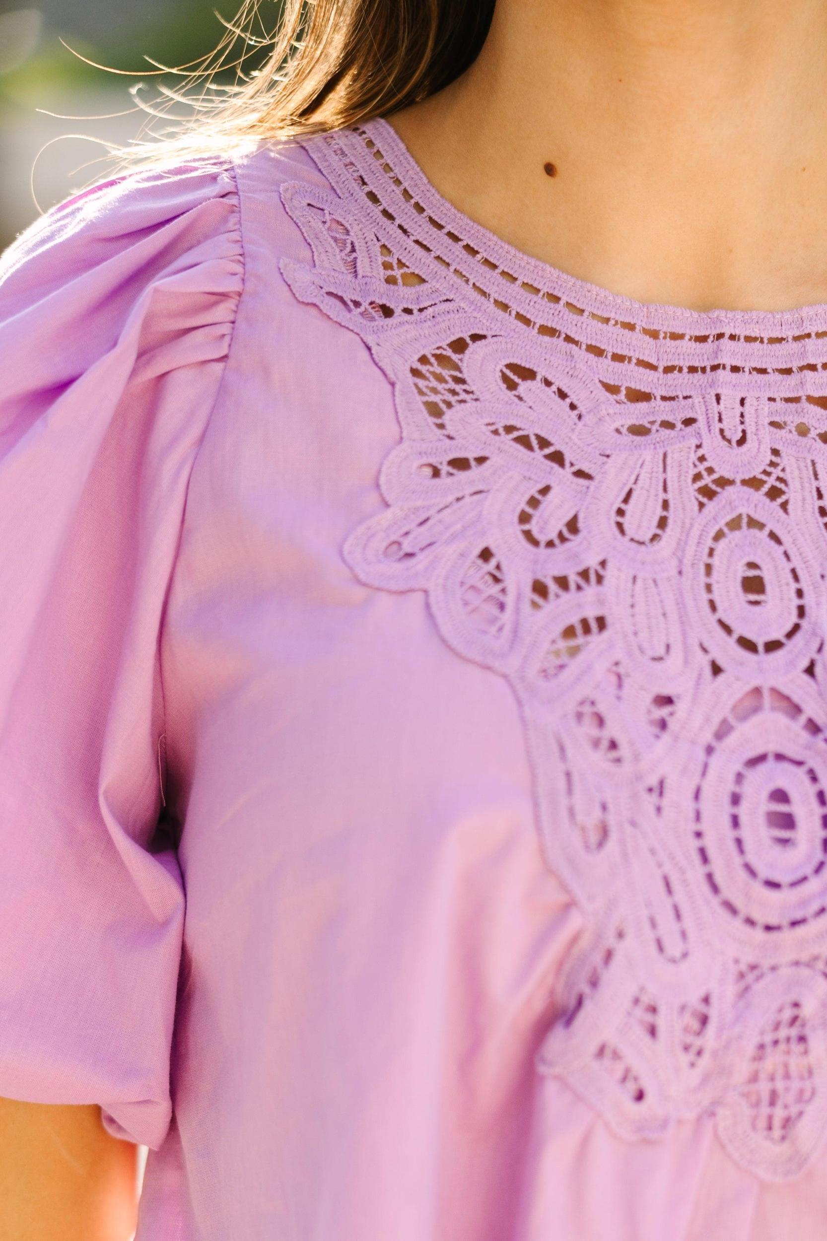How cute is this blouse?! We are loving the crochet detailing around the neckline. It's so intricate and we love those puff sleeves! This pastel blouse is going to look great with white jeans or shorts! Round neckline Short bubble sleeves Crochet detailing No stretch Savannah is wearing the small.