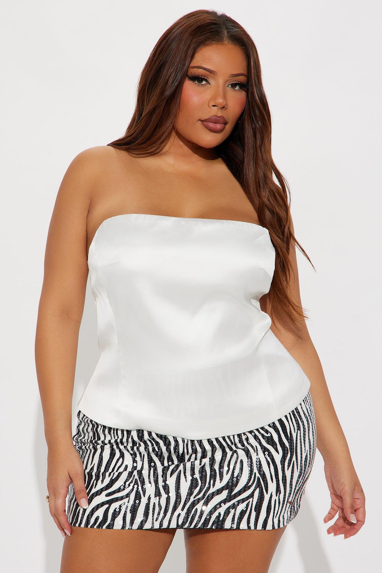 Available In Eggplant, Emerald And White. Satin Top Straight Neck Non Stretch Self: 95% Polyester 5% Spandex Lining: 100% Polyester Imported