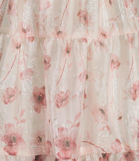 From Storia, this dress features: All-over floral print Deep v-neckline Flutter sleeves Front tie detail at the bodice Graceful open back Long, flowing, tiered skirt for airy movement 53" length Polyester; lined Hand wash/line dry Imported.