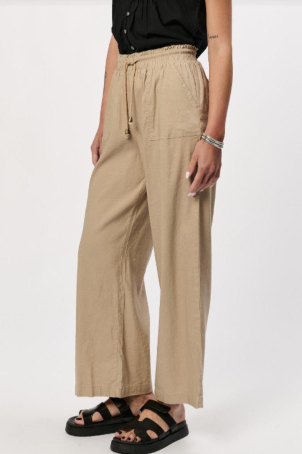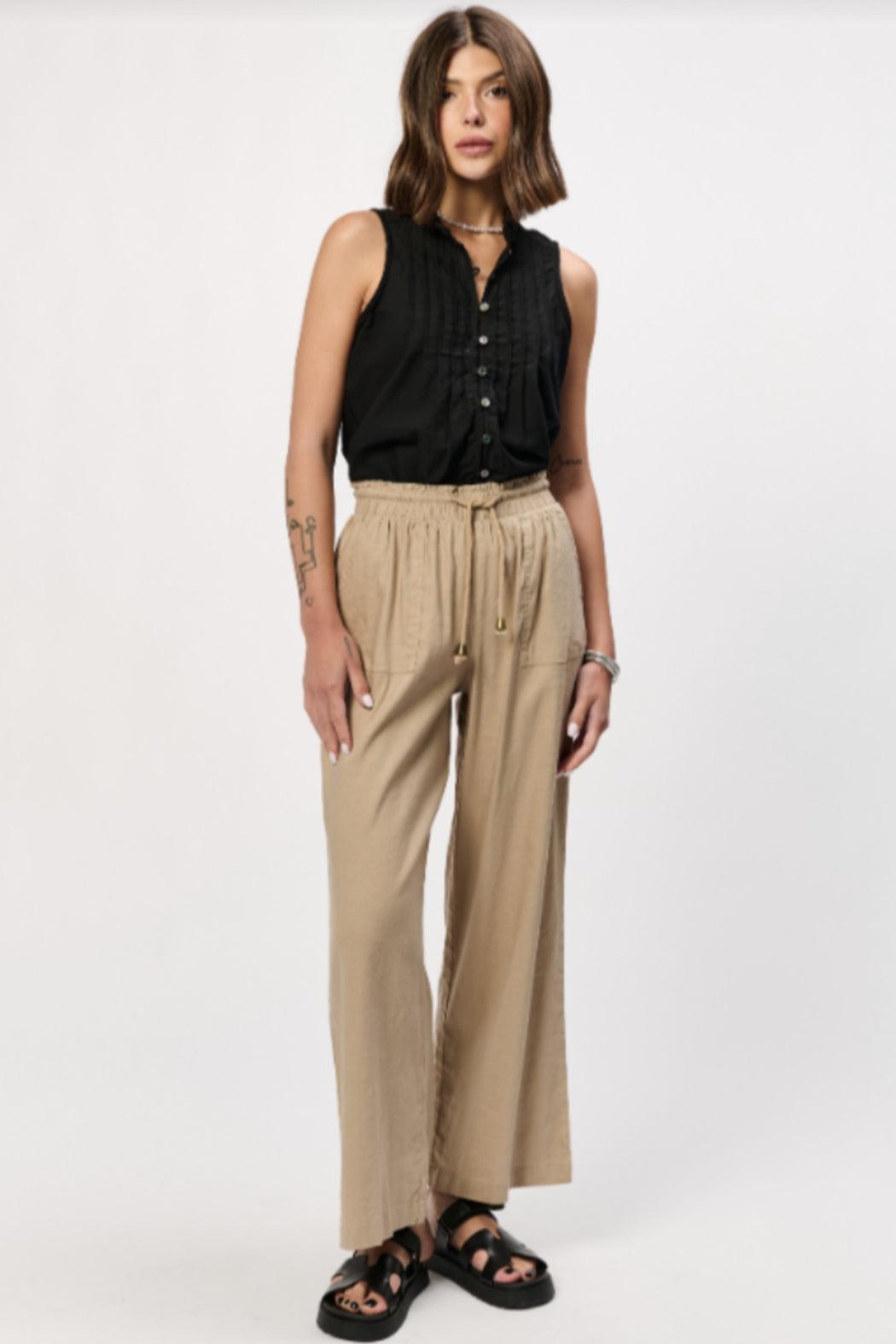 We love this ruffle detail linen pant. So neutral, it will be your go to pair of pants to wear this summer. Pair back with a simple top or dress it up!