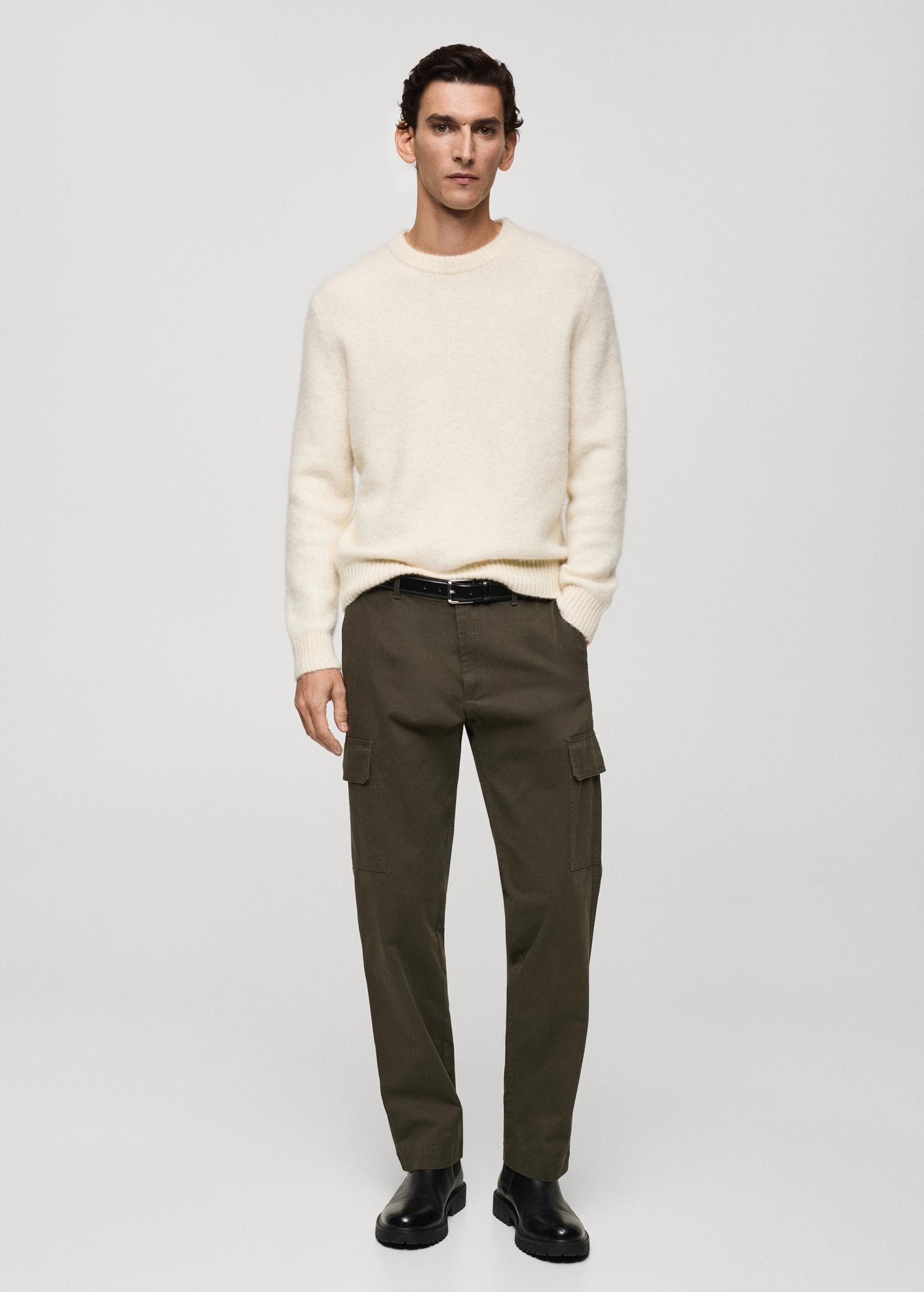 Straight-fit. 100% cotton fabric. Medium waist. Double button and zip closure. Belt loops. Elastic band on the back. Two front pockets. Two patch pockets and flap on the leg . Two button-up welt pockets on the back. The model is 6'3" and is wearing a size 42