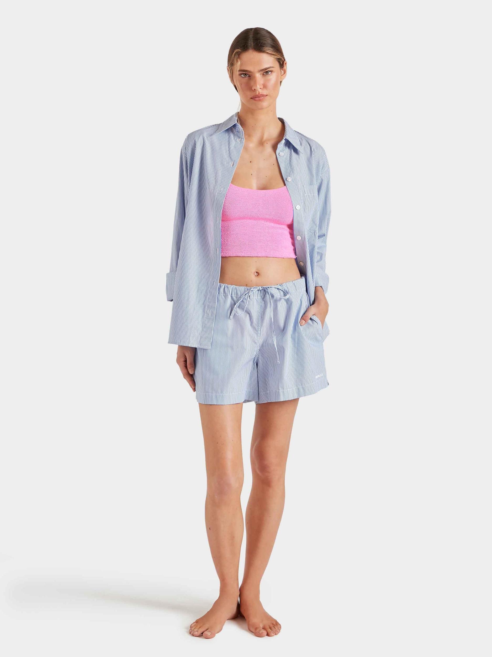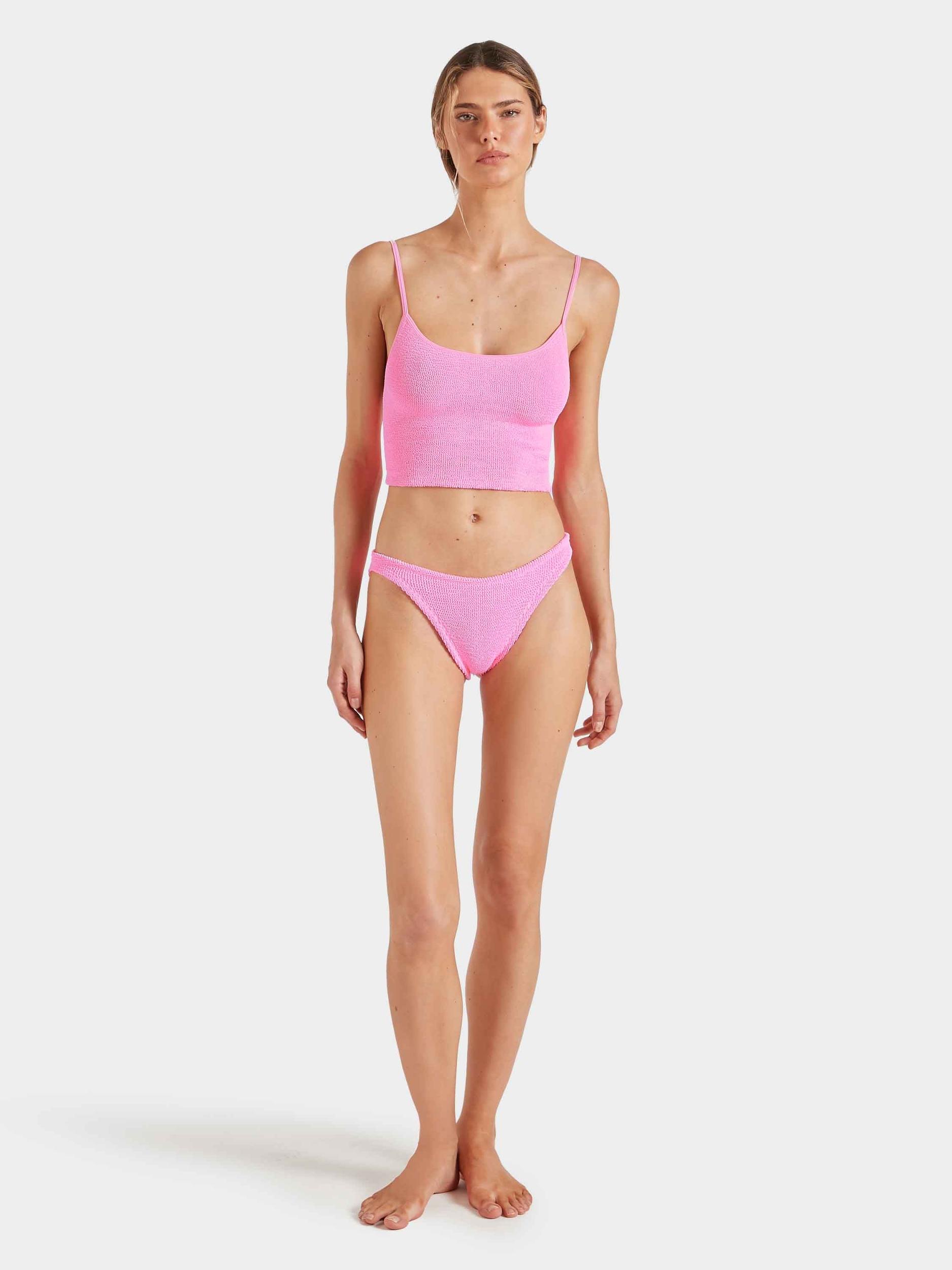 Brought back from the Hunza G archives, the strap bikini is an effortless staple. The longline top has a low back, scooped neckline and 90s-style spaghetti straps that make it double as the perfect everyday cami. Paired with our classic briefs, this tankini offers more coverage than your standard bikini, and more versatility than a one-piece. Mix and match the bottoms with our separates to create your own look.