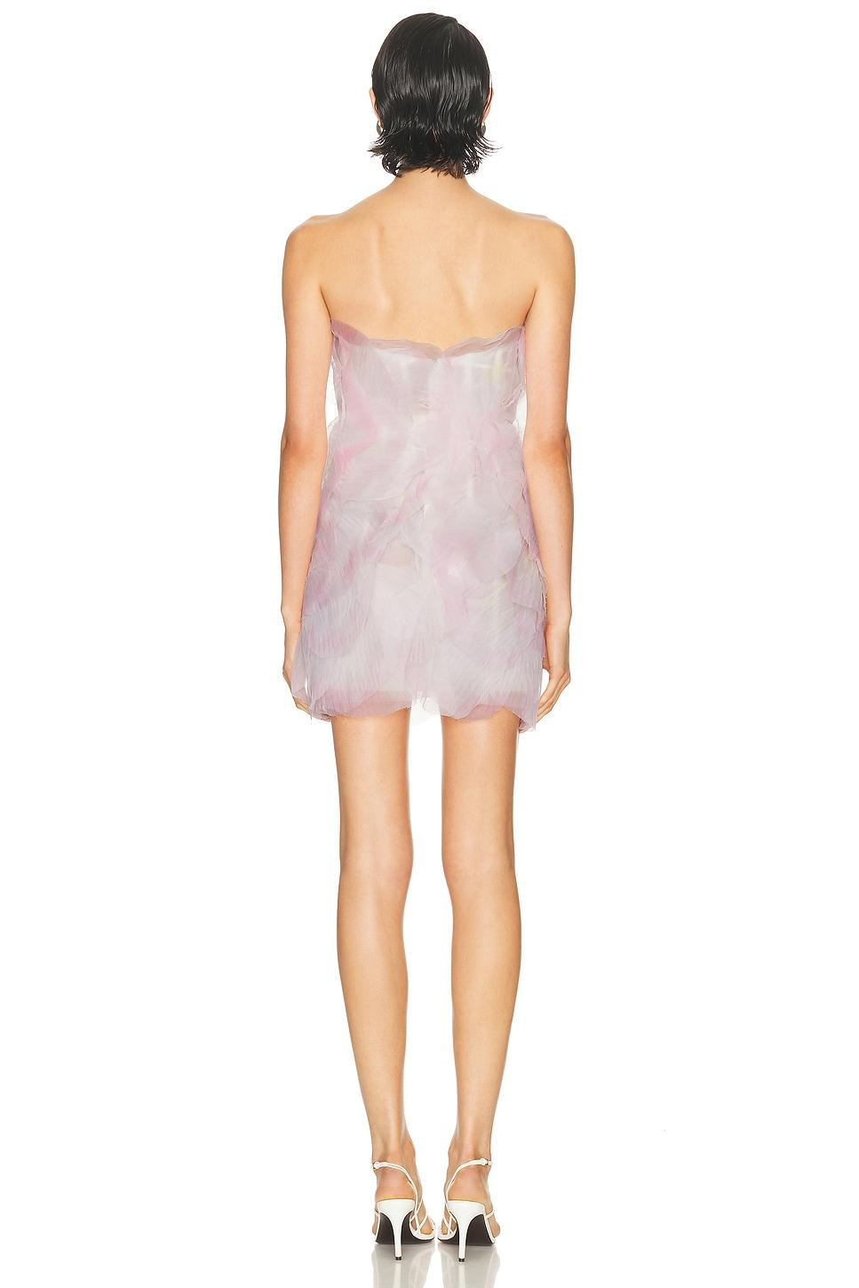 dressSelf: 100% polyamideBustier: 82% polyamide, 18% elastaneLining: 100% silk / Made in USA / Dry clean only / Fully linedBuilt in boned bodice with padded bra cups / Hidden back zipper closure / Chiffon textile / Flower petal design / Our Style No. OSCF-WD93 / Manufacturer Style No. 24SE651TUL / Model is wearing size 0.