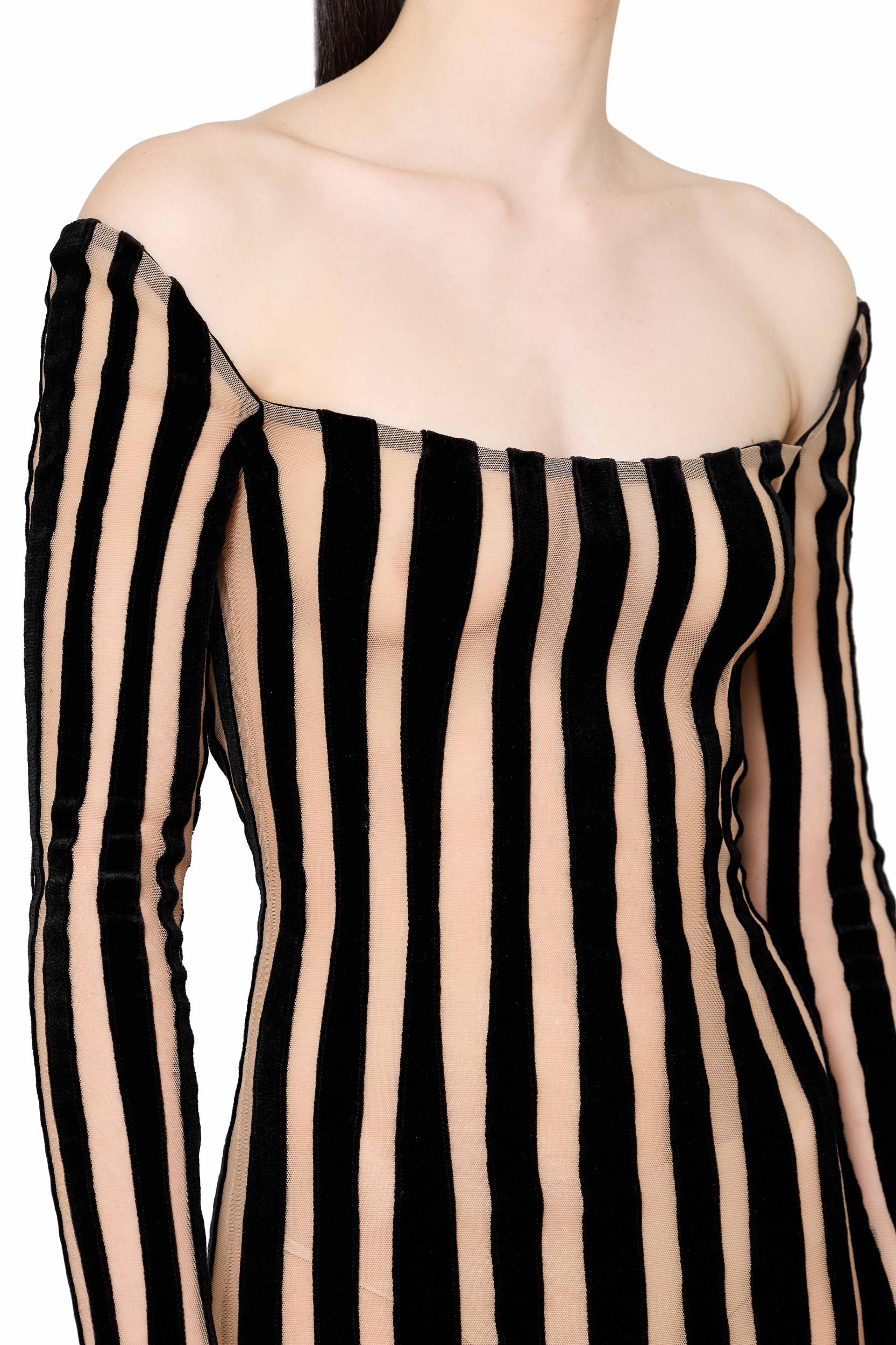 The square neck and long sleeves are complemented by a scoop back, while the concealed rear zip fastening ensures a seamless silhouette.