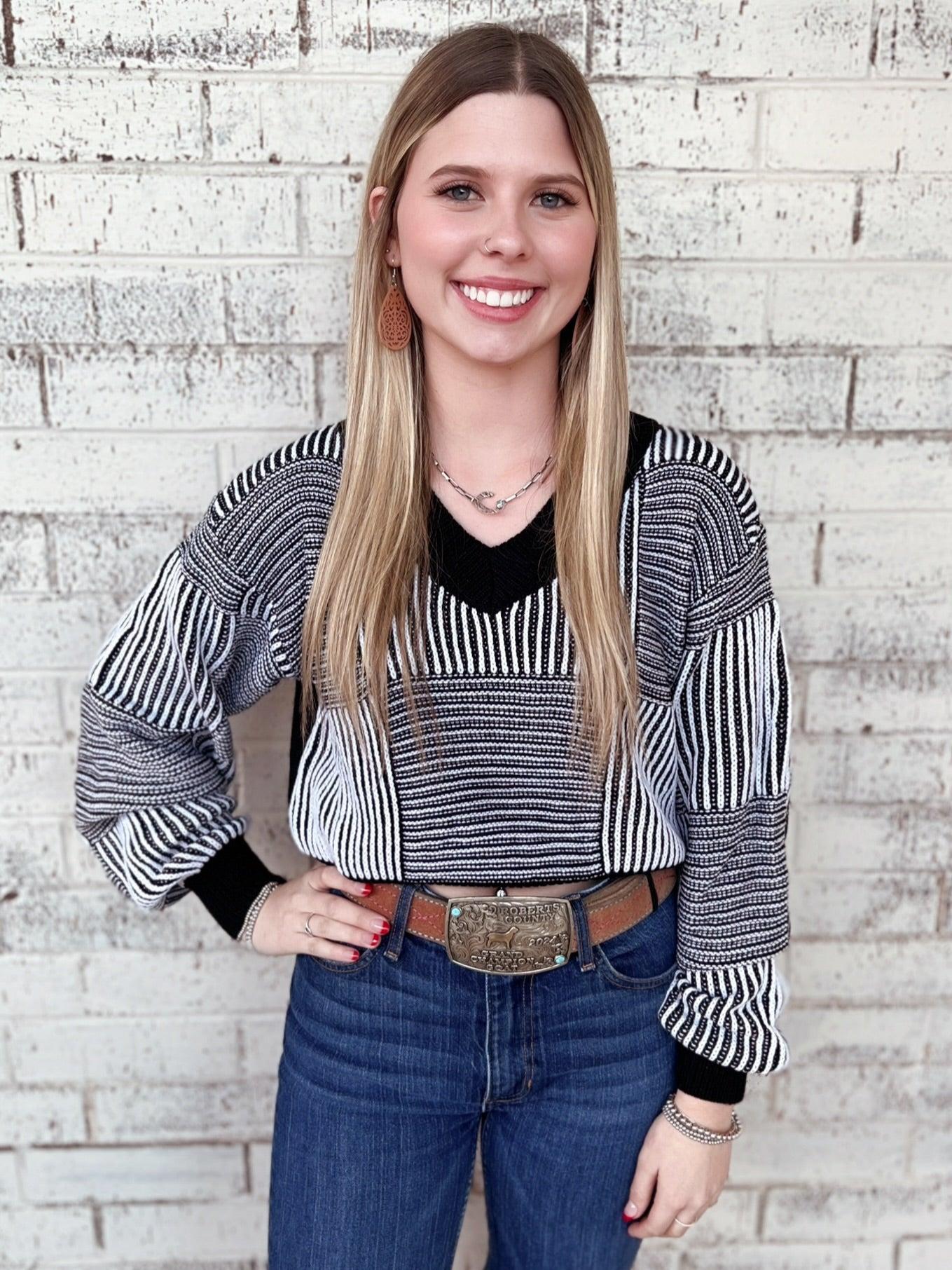 Striped Lantern Sleeve Cropped Sweater - 3 Colors | Gussied Up Online Boutique Introducing our Striped Lantern Sleeve Cropped Sweater, available in 3 colors! Knitted for a soft, comfy feel, with lantern sleeves and a v neck for a touch of style. Perfect for any occasion, from a day out with friends to a cozy night in. Choose from pink, khaki, or black. Dress it up or down and add a pop of color to your wardrobe.