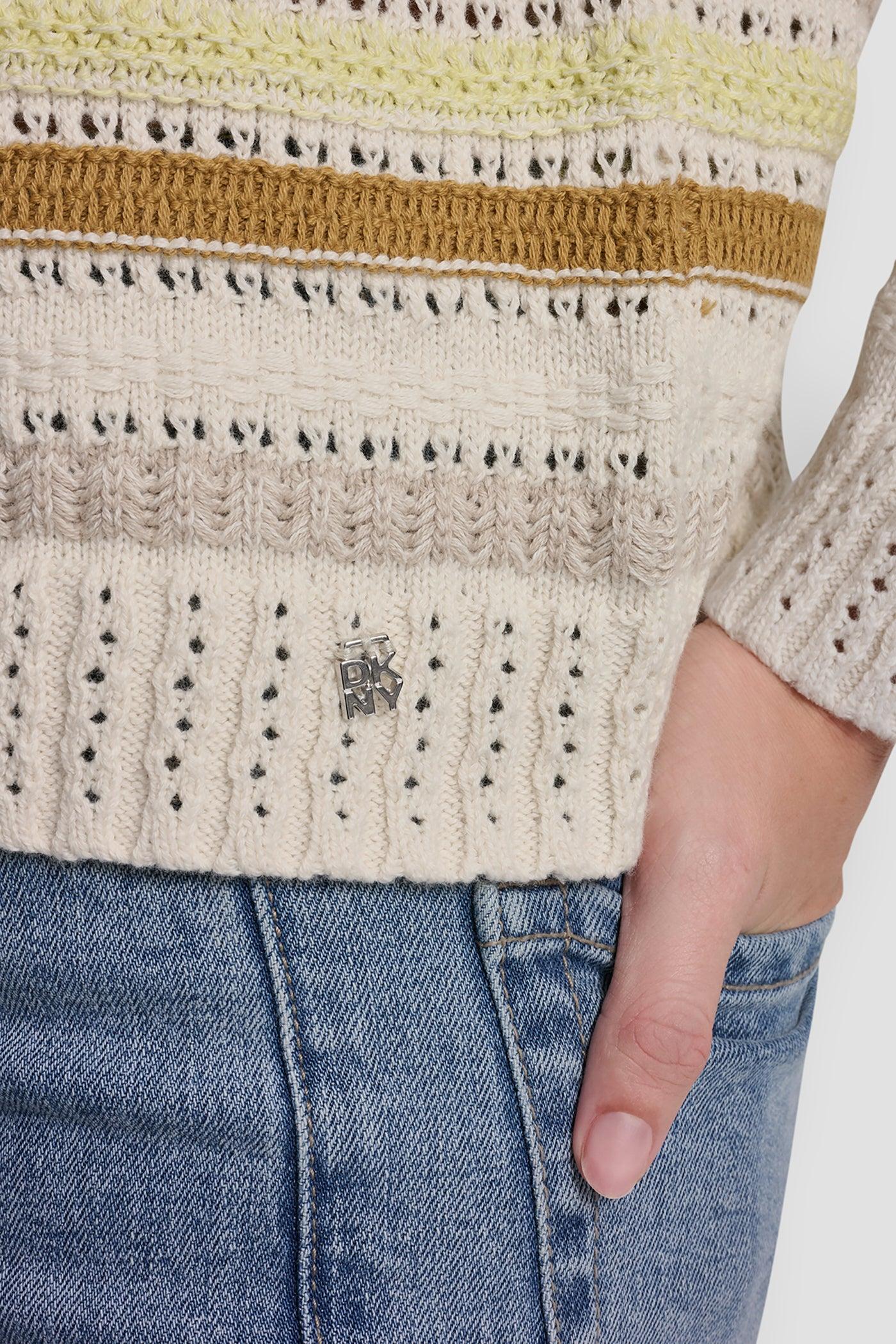 STRIPED MIXED POINTELLE STITCH SWEATER