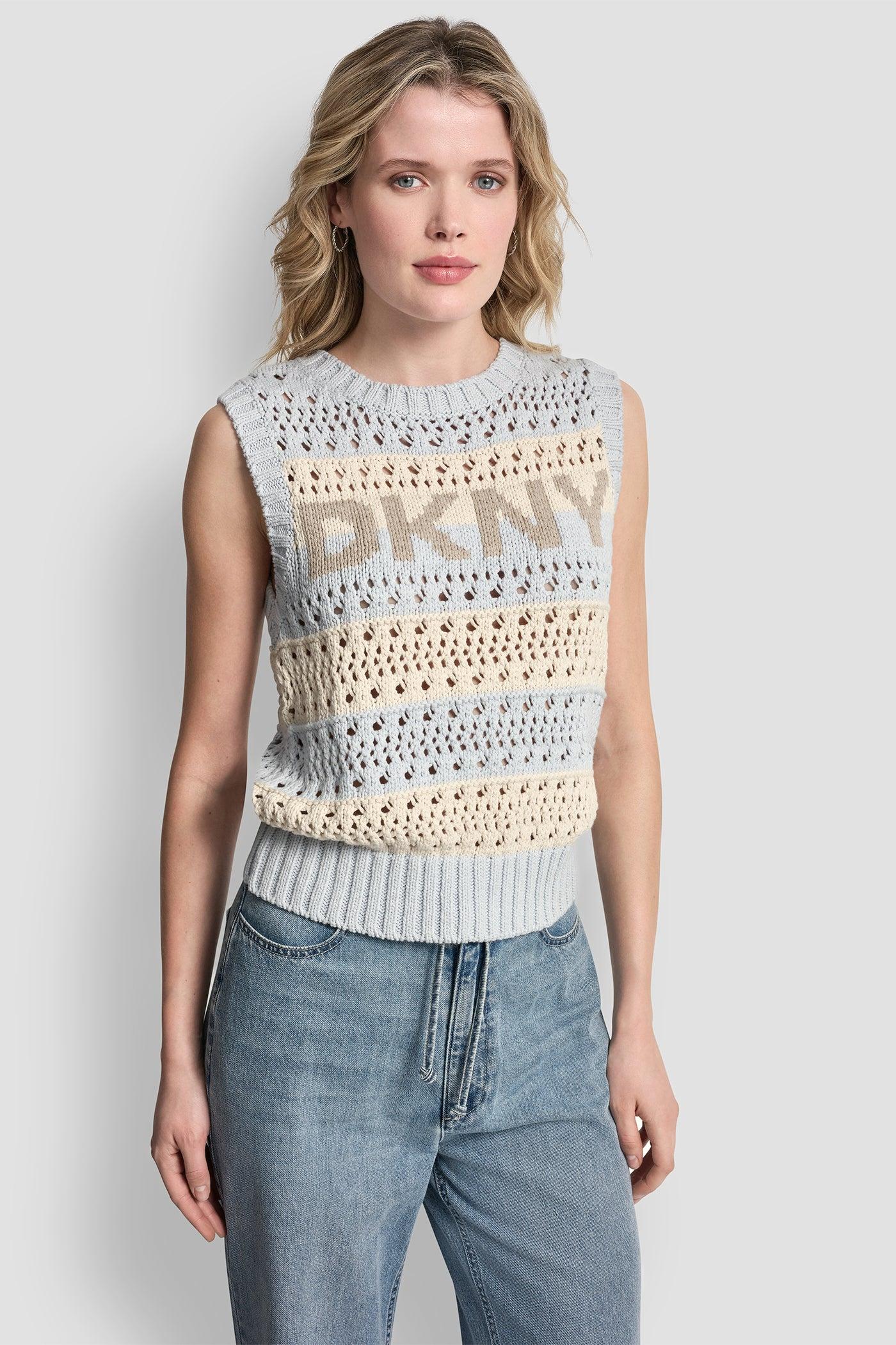 STRIPED POINTELLE STITCH SWEATER