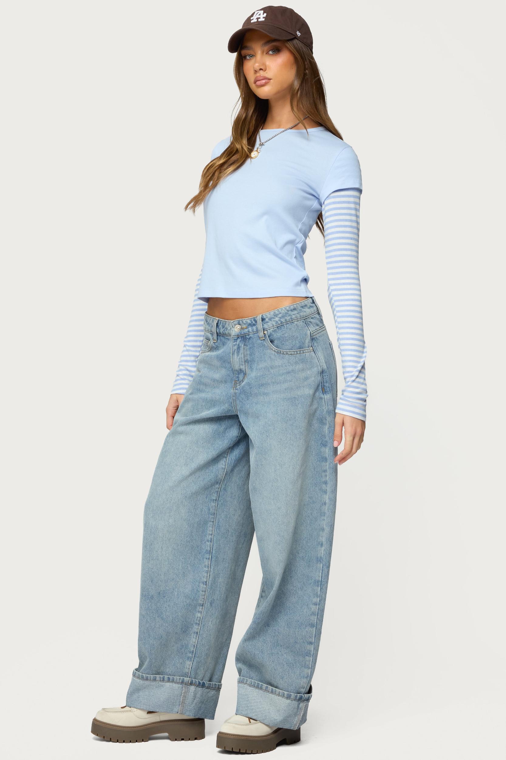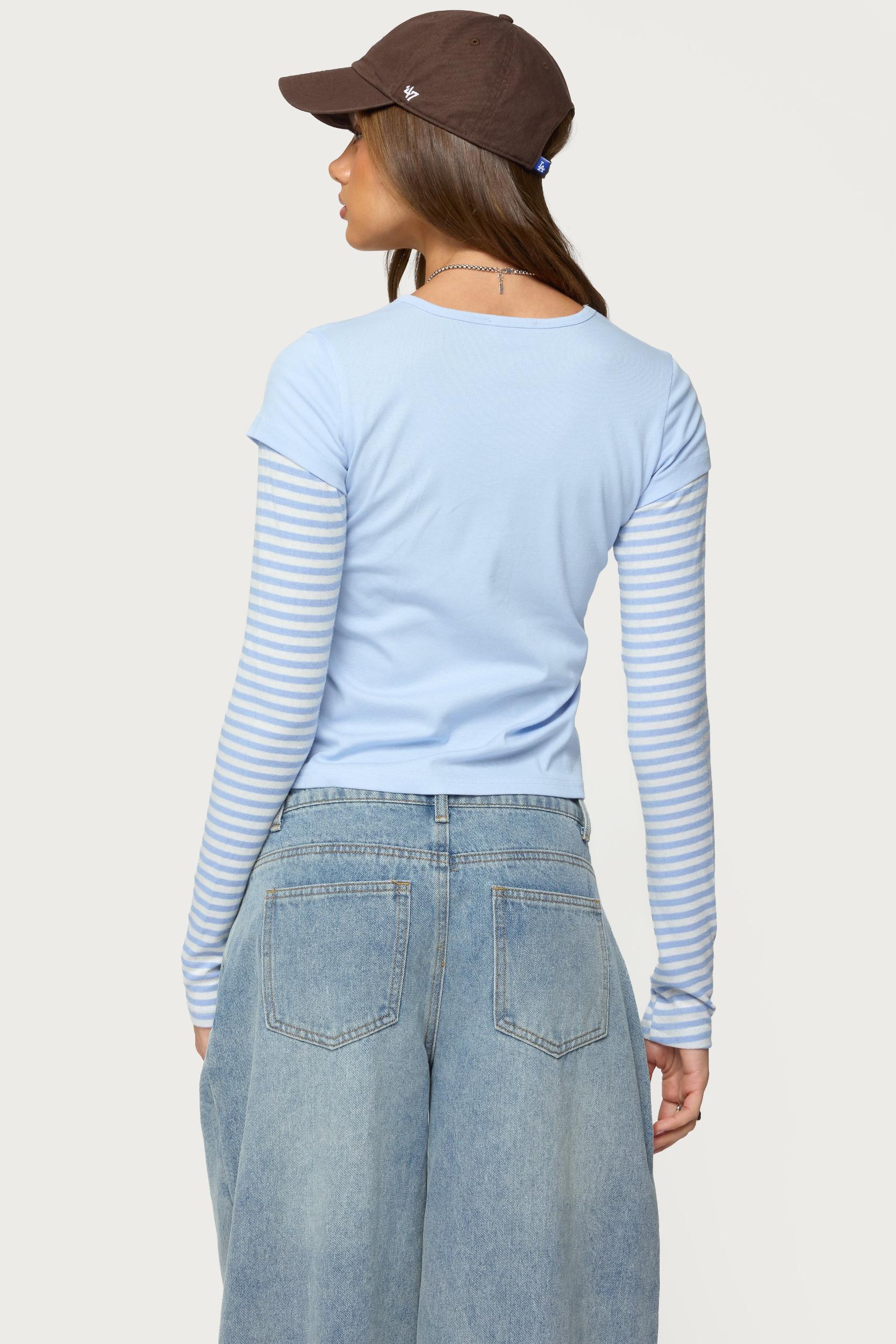 T shirt Striped pointelle knit long sleeves Layered design Cotton, Rayon, Spandex Model wears size S Model height is 5'10 Item care: Machine wash at maximum 30ºC, do not bleach, do not tumble dry, iron at a maximum of 110ºC, do not dry clean
