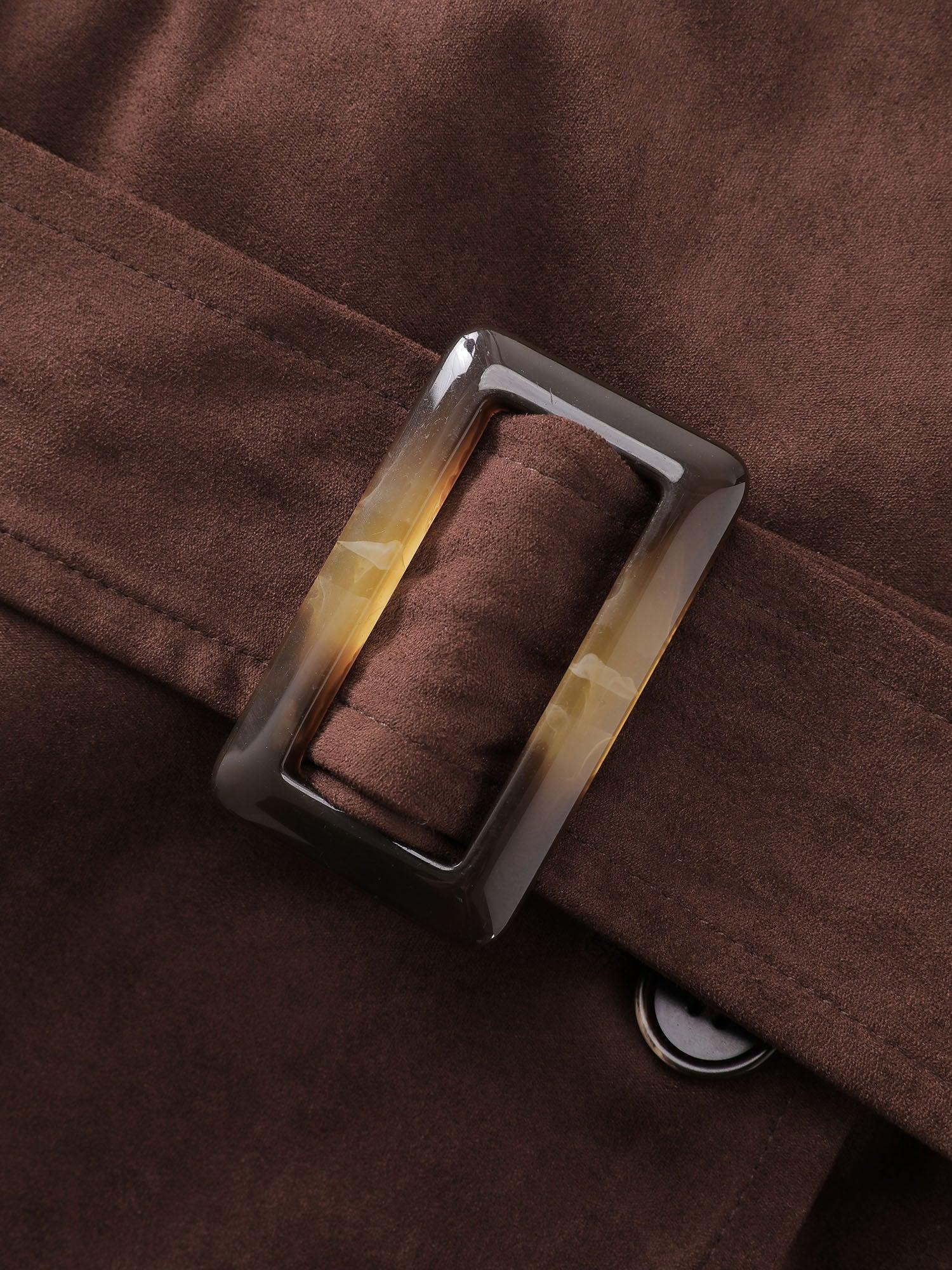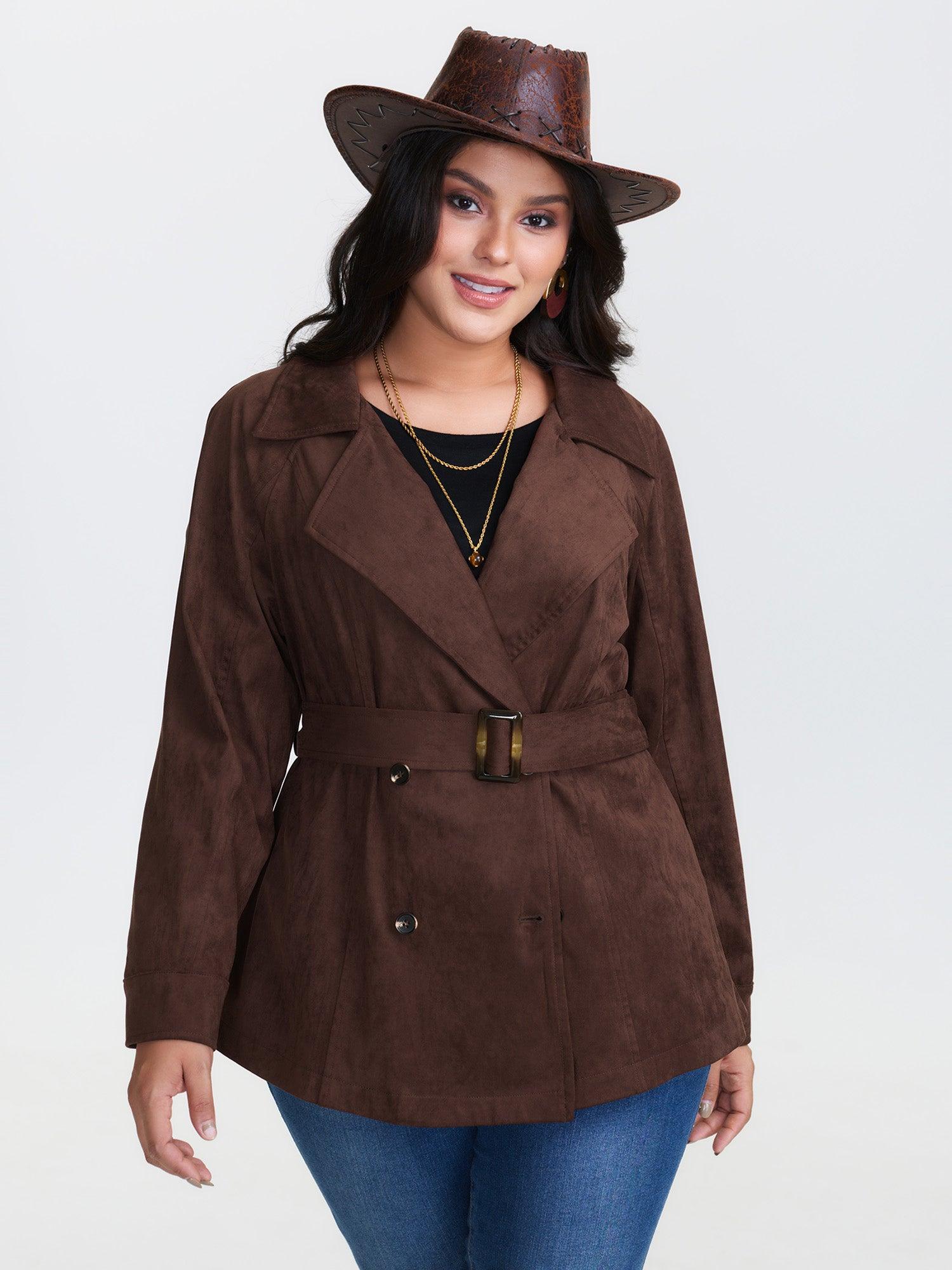 Shop Suede Velvet Cinched-Waist Lined Jacket now and redefine your style with confidence at BloomChic. Tailored for mid and plus-size women. This trendy Outerwear Women, sizes 10-30. Color:Browncoffeecolor;Style:Boho;Prints:Non;Pocket:No-pocket;Belt:Belt;Closure Type:Button;Lining:Lining