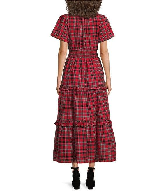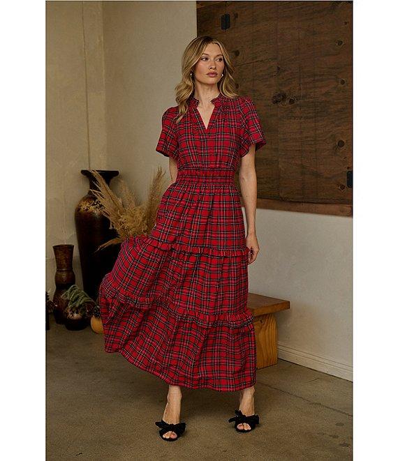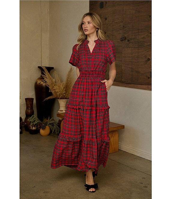 From Sugarlips, this dress features: Poplin fabrication A-line silhouette Plaid print Split v-neckline Short sleeves Hidden side seam pockets Smocked waist Tiered skirt Relaxed fit Unlined Pull-on construction Approx. 54" length Cotton Hand wash Imported.