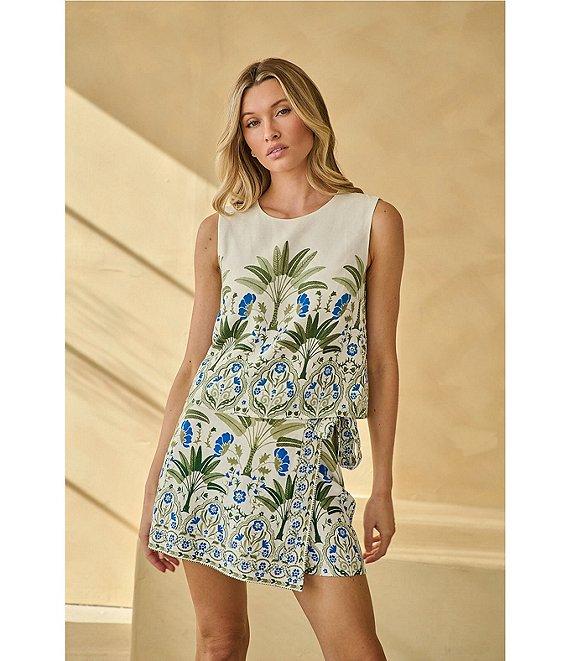 From Sugarlips, this top features: Linen fabrication Floral print Round neckline Sleeveless Pull-over construction Keyhole back detail Tank silhouette Lined Approx. 20.5" length Self: Rayon/linen Lining: Polyester/spandex Hand wash Imported.