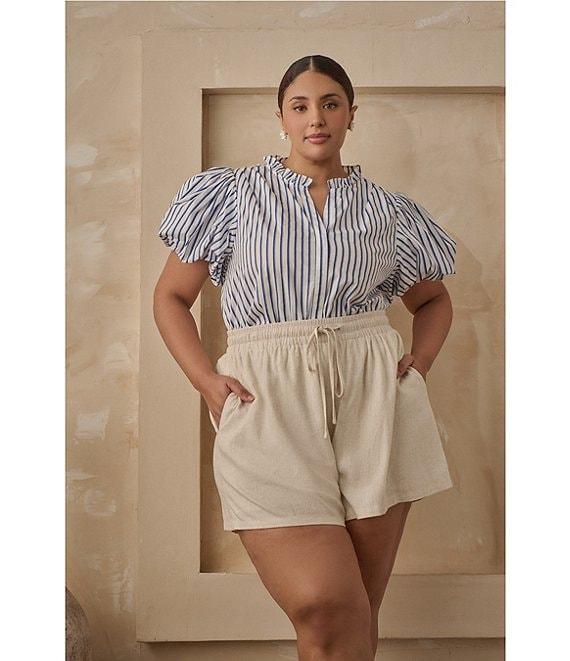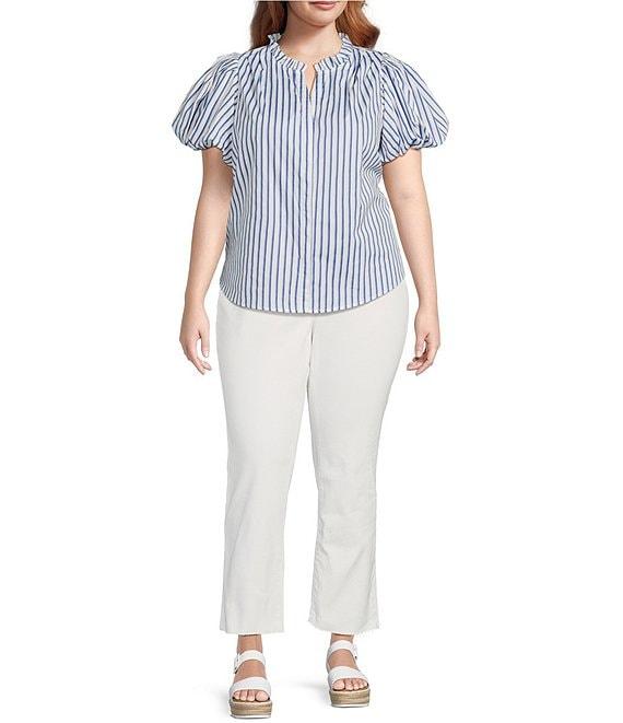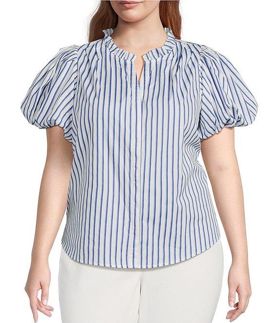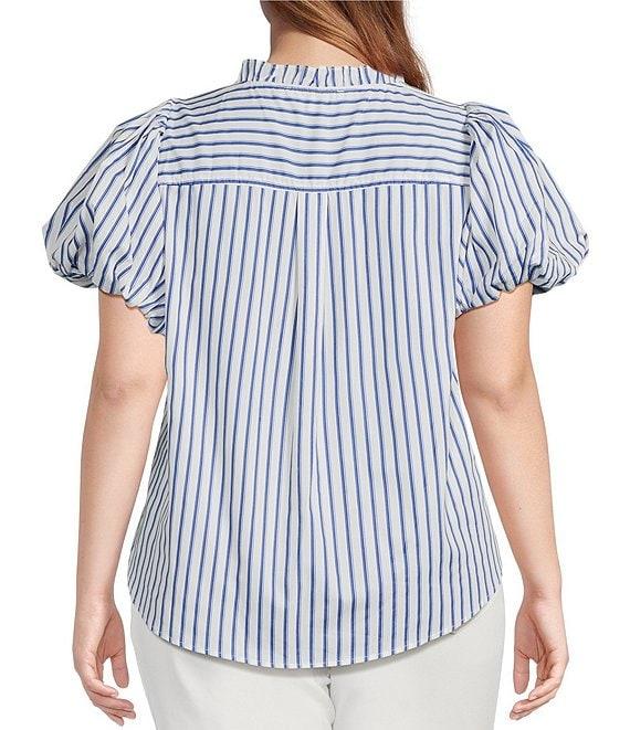 Sugarlips Plus Jayla Vertical-Striped Puffed Sleeve Button Front Shirt