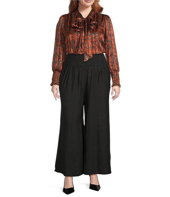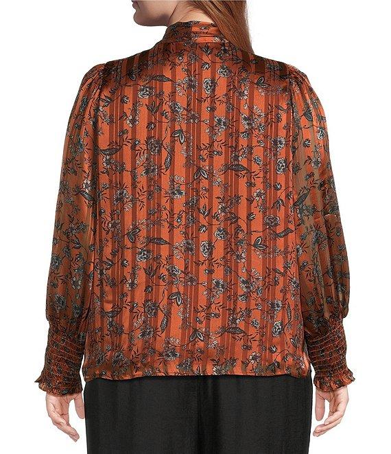 From Sugarlips Plus, this blouse features: Floral/stripe printed satin fabric Flattering neck tie detail Balloon long sleeves with smocked cuffs Straight fit Pullover styling Self of polyester; lining of polyester/spandex Machine wash/tumble dry Imported.