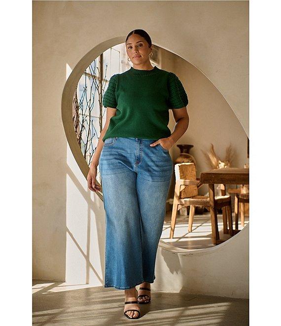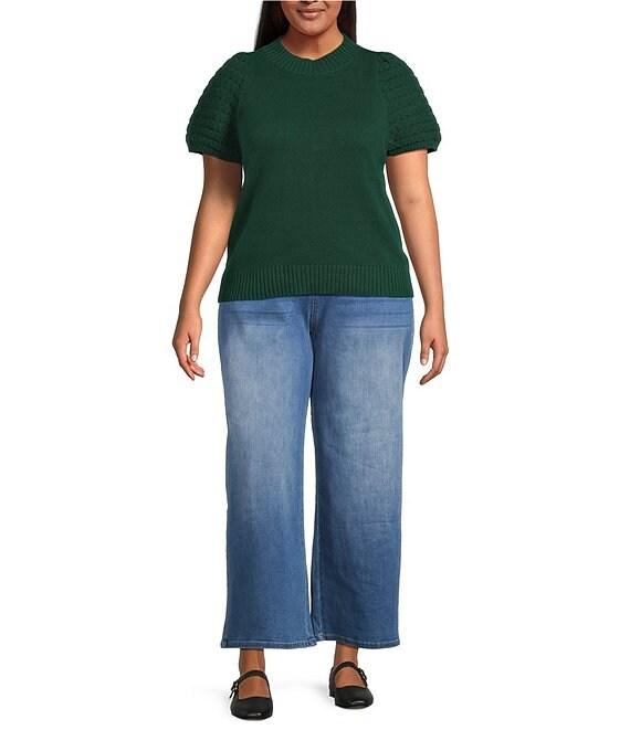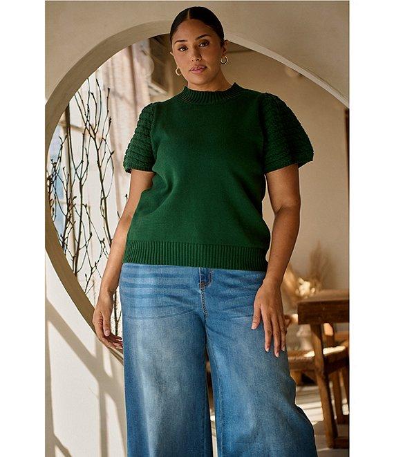 Sugarlips Plus Pearla Mock Neck Crochet Short Sleeve Sweater Top