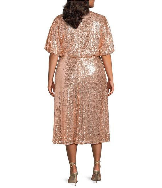 From Sugarlips Plus, this dress features: Sequin fabrication A-line silhouette Round neckline Short puffy flutter sleeves Fitted fit Fully lined Flutter hemline Invisible center back zip closure Approx. 49.5" length Polyester; lining: polyester Hand wash Imported.