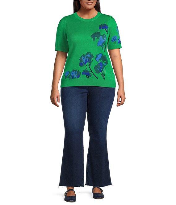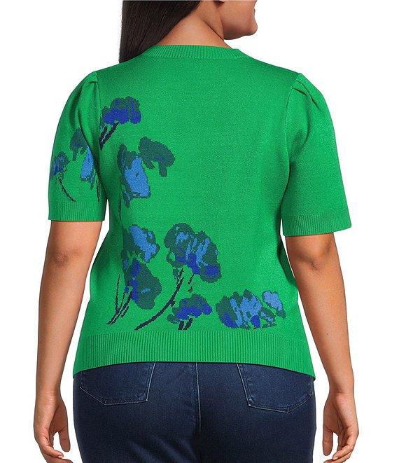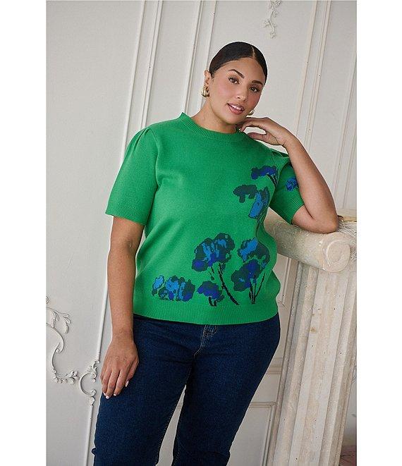 Sugarlips Plus Size Kersey Floral Crew Neck Pleated Short Sleeve Sweater Top