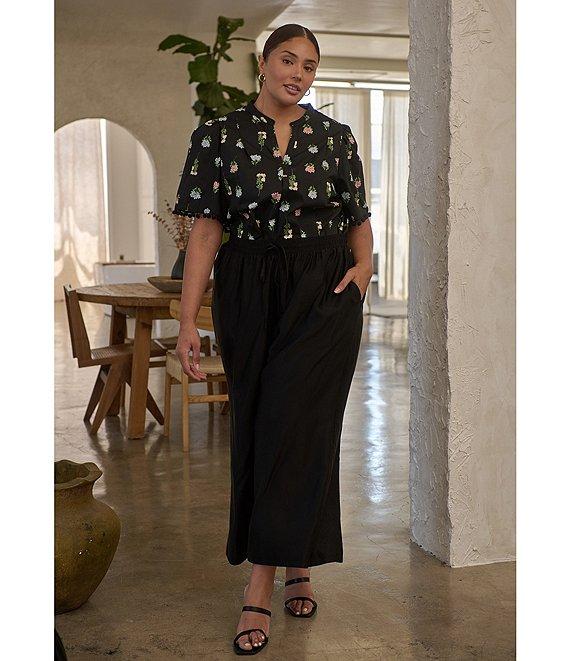 From Sugarlips Plus, these pants feature: Striped, textured fabric Pull-on styling High waist with drawstring Wide leg silhouette Viscose Hand wash/line dry Imported.