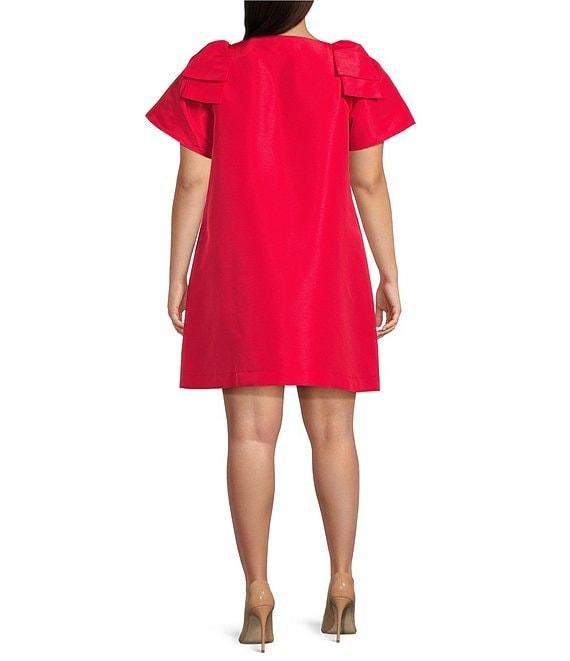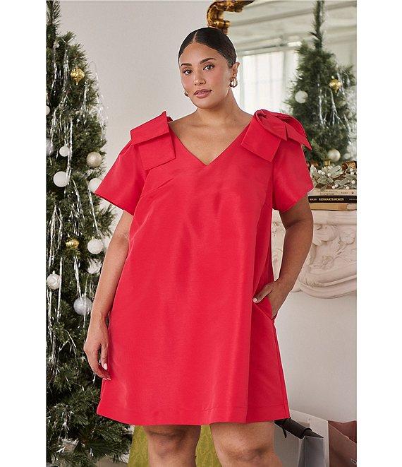 Sugarlips Plus V-Neck Short Sleeve Alani Bow Trapeze Mini Dress
